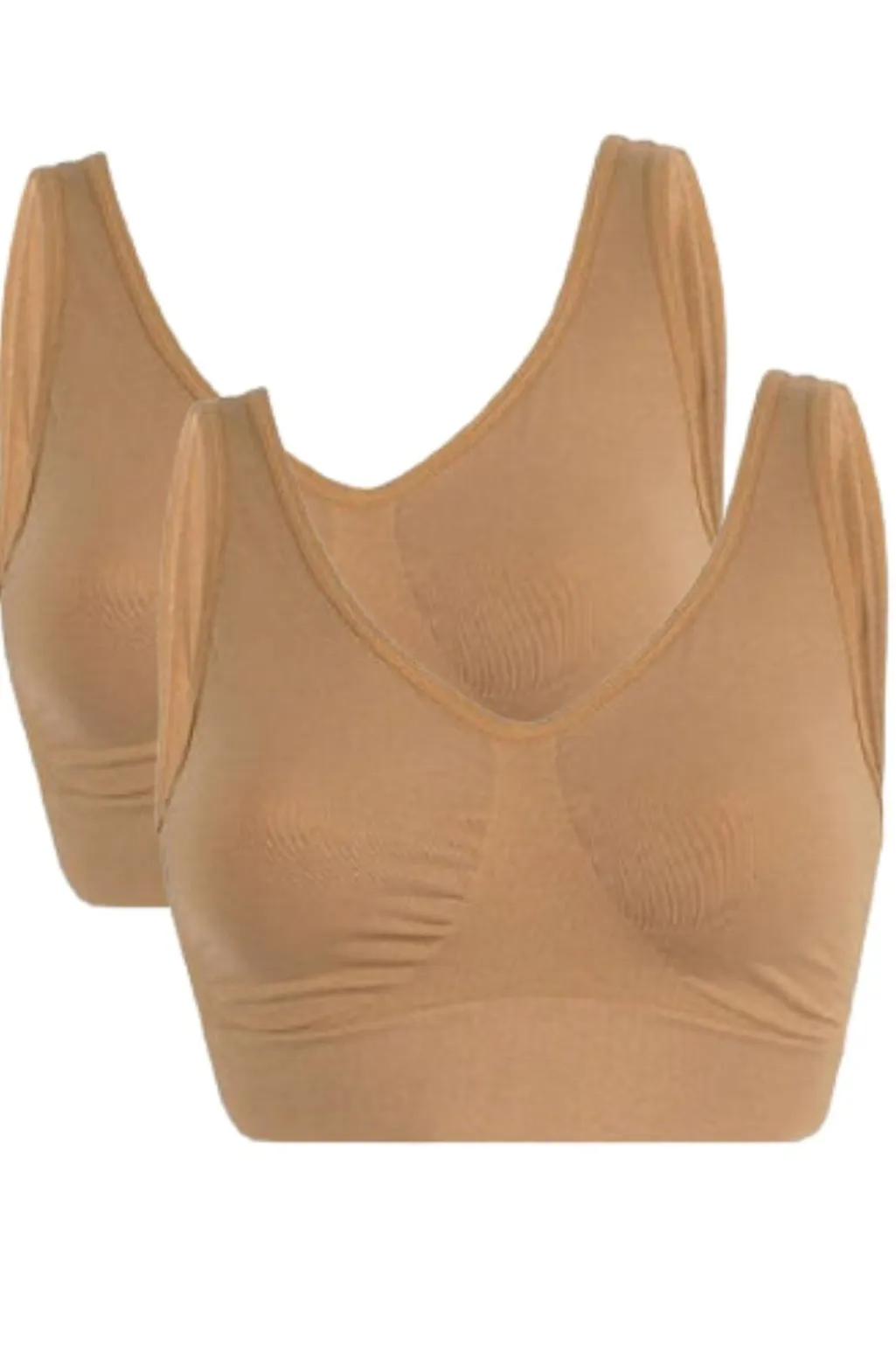 BH-top i to-pak fra Soft Basic med brede stropper i en neutral nude farve. Fremstillet af genanvendt polyamid, der giver en behagelig og åndbar pasform til hverdagsbrug.