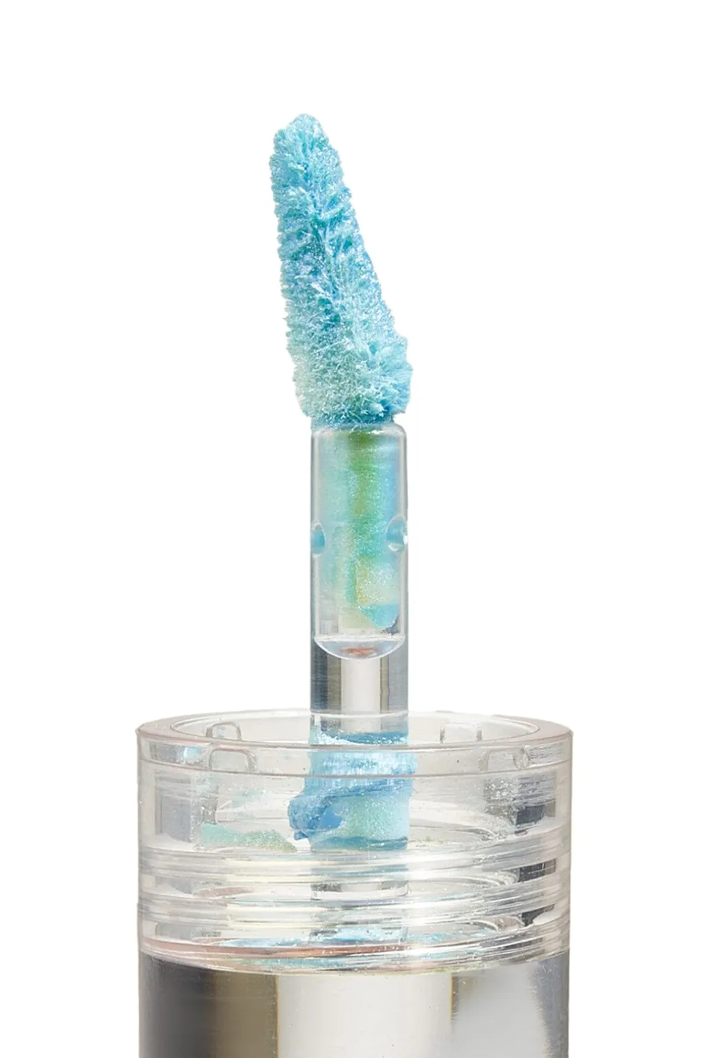 Den himmelblå farve har fine glitterpartikler, der skaber en skinnende effekt på neglene med et let metallisk skær.