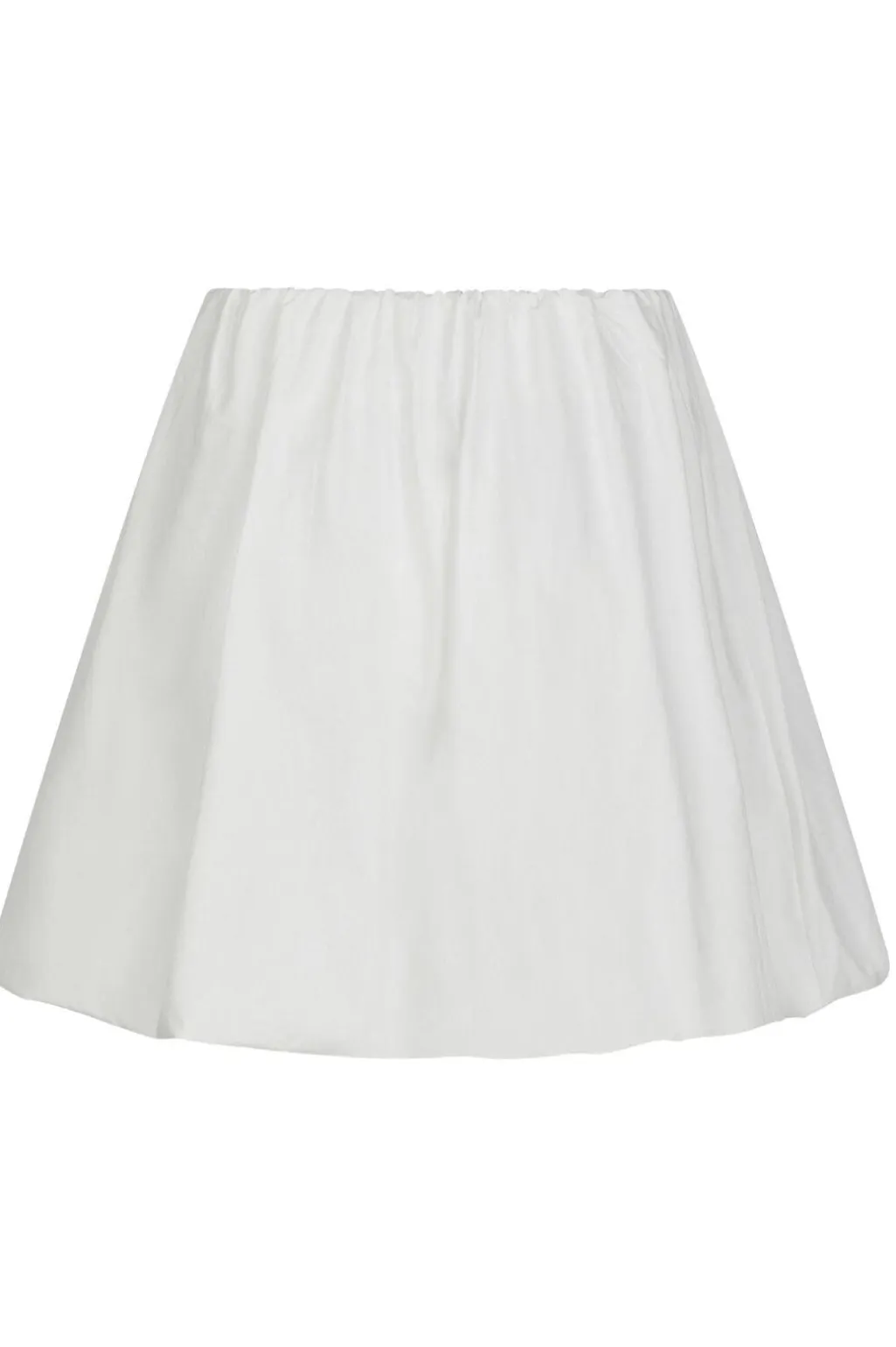Hvid kort nederdel fra Neo Noir med ballonform og flæsedetaljer. Den fyldige silhuet og den løse pasform giver nederdelen et let og luftigt udtryk.