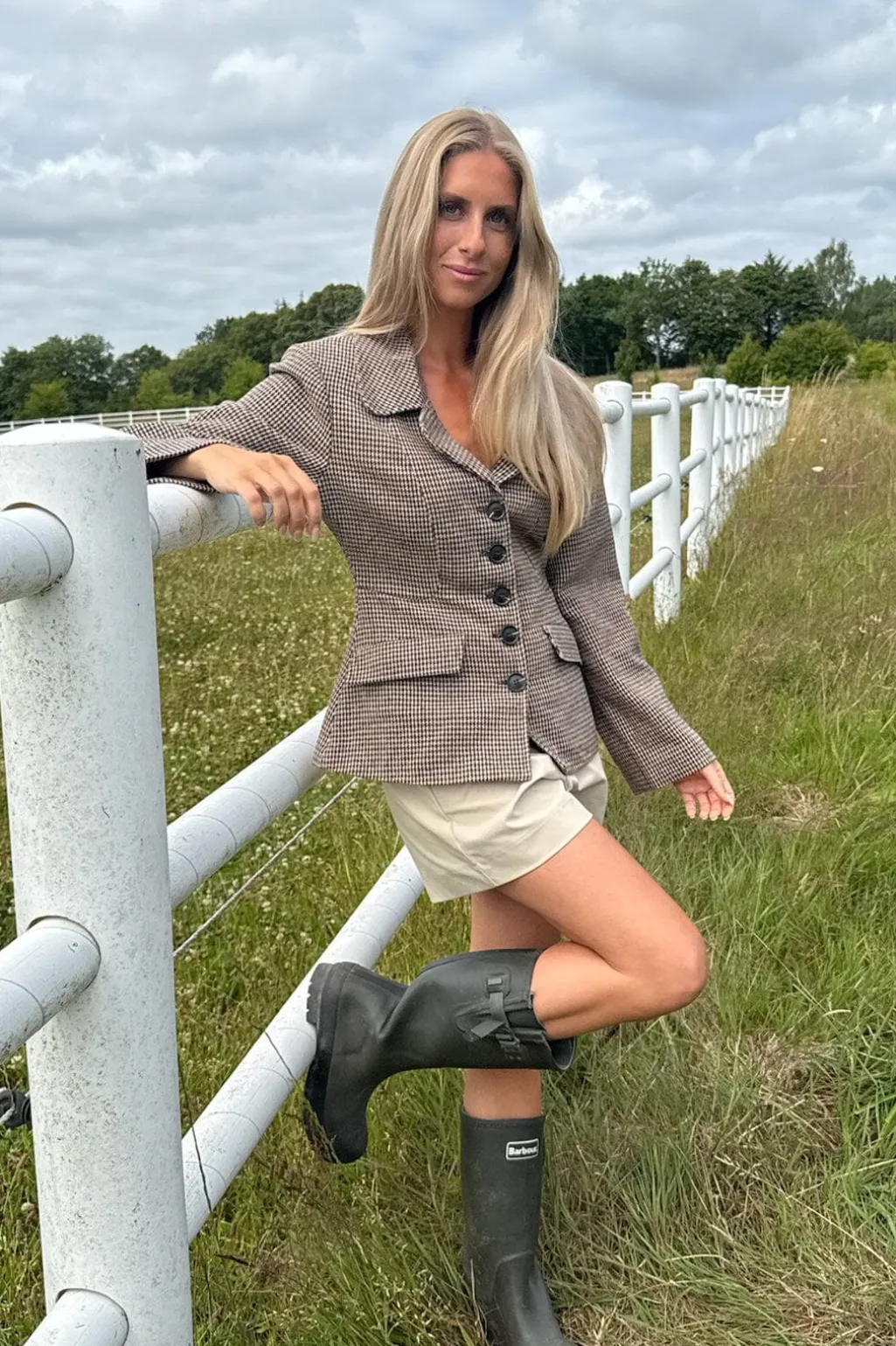 Ternet blazer fra BYIC med skræddersyet pasform og skjortekrave. Blazeren har lange ærmer, to forlommer og en slids bagpå. Det brune ternede mønster er skabt i et tungt stof.