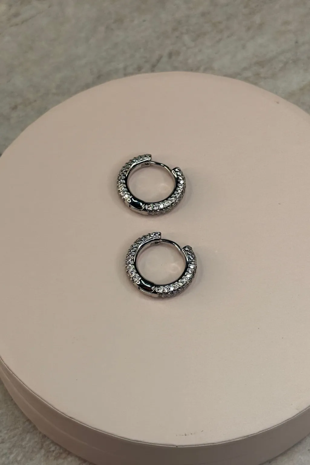 Cirkulære øreringe fra Molly&My Jewellery i en sølvfarvet nuance. Øreringene er dekoreret med små sten hele vejen rundt.