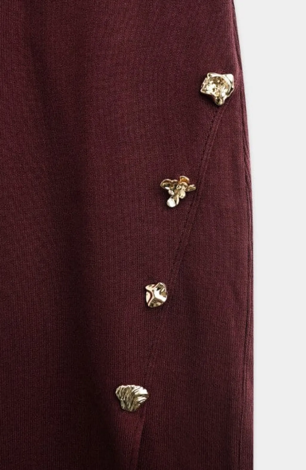 Bordeauxfarvet nederdel fra A-bee med høj talje og en længde til midt på læggen. Den dybe bordeauxfarve er ensfarvet.