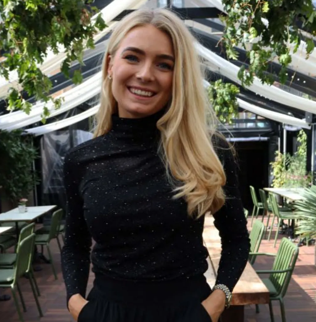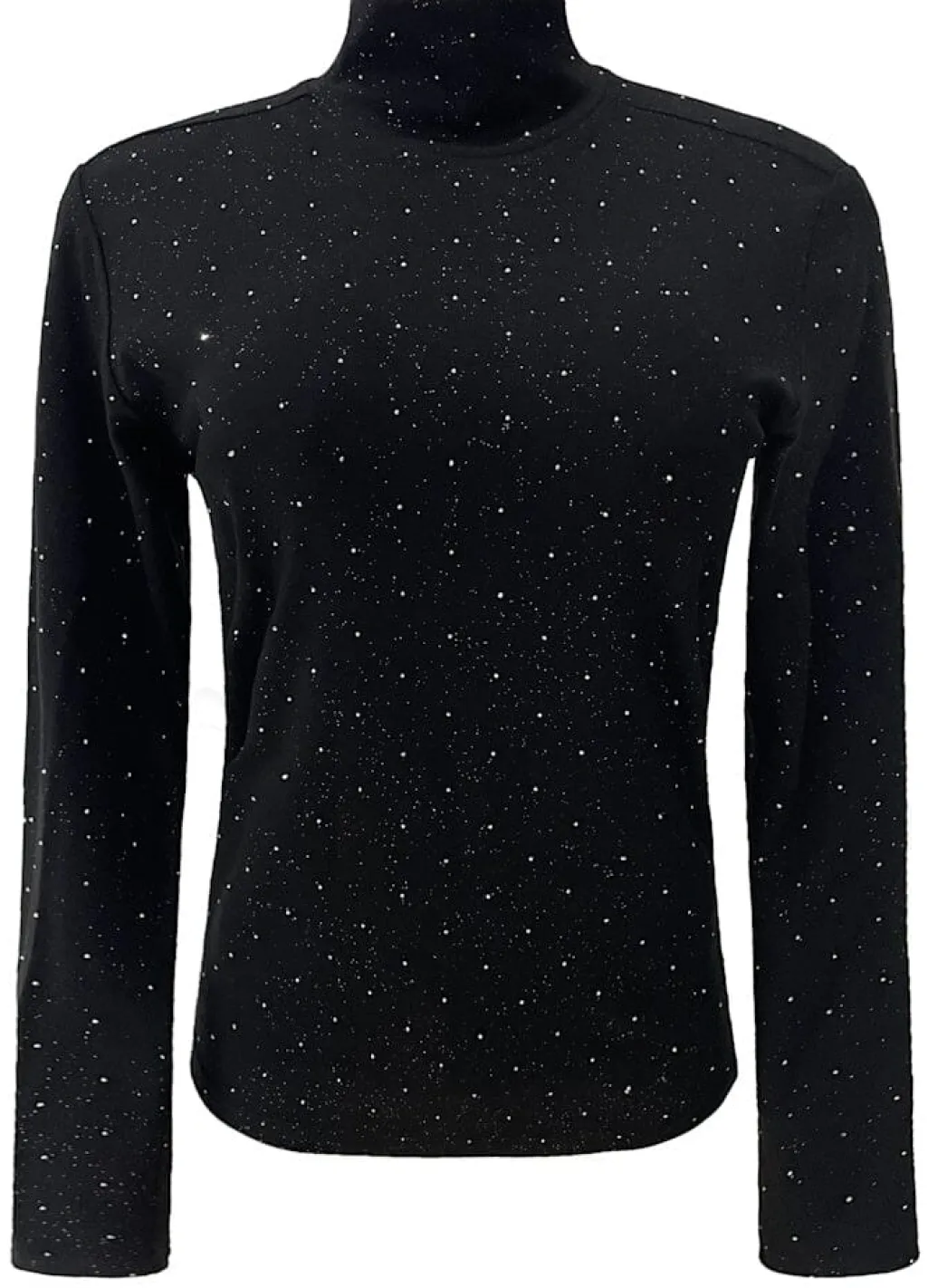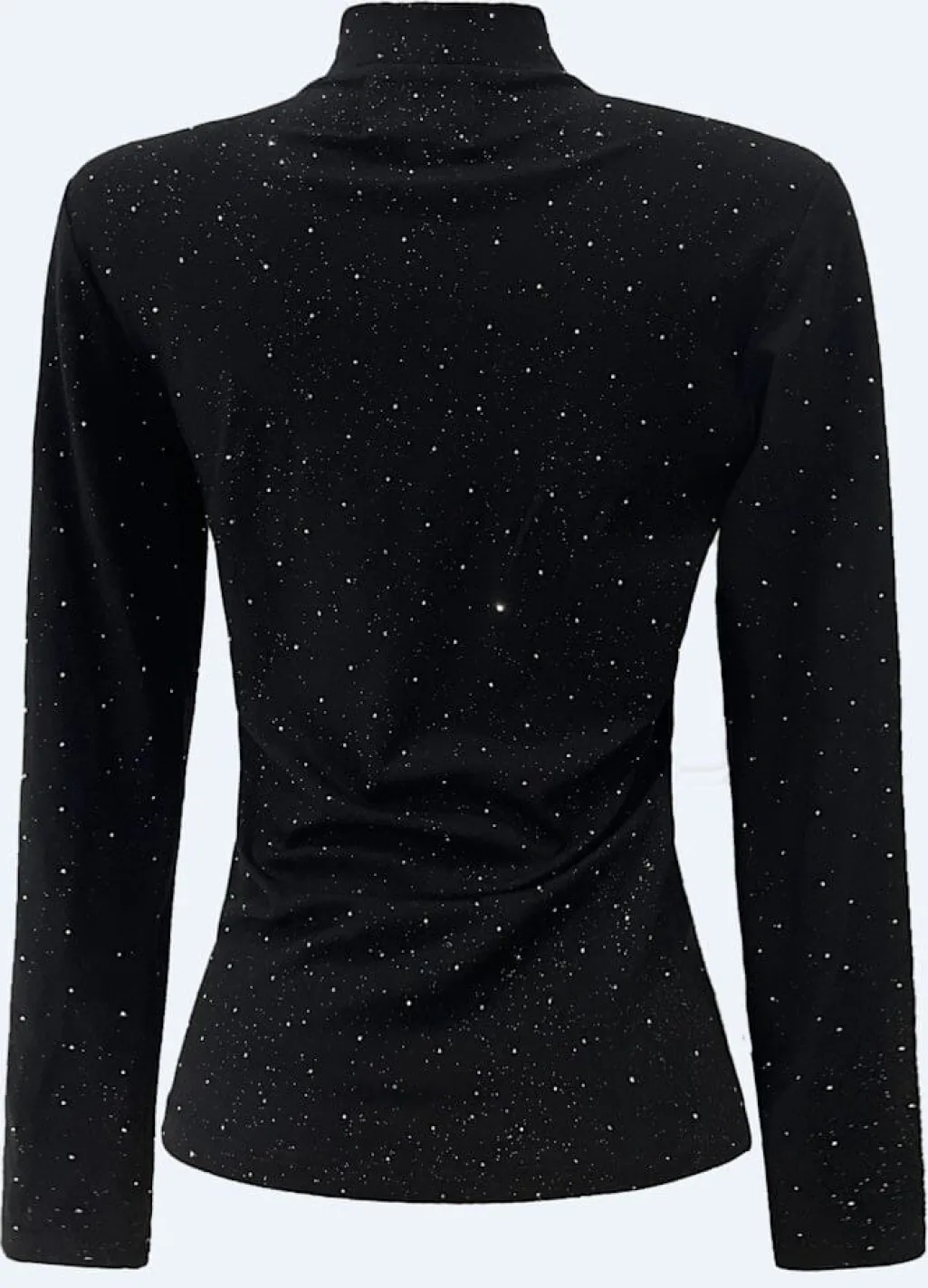 Sort bluse fra Liberte med lange ærmer og høj hals. Blusen har små pailletter fordelt over hele stoffet i et prikkemønster.