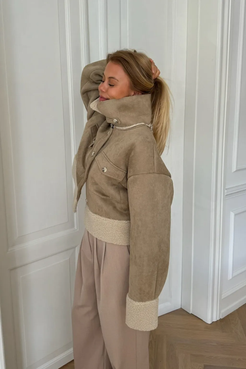 Sort og hvid quiltet jakke i en oversized pasform med blomsterprint i forskellige farver, to store lommer og knapper ned langs fronten. Passer til størrelsen.