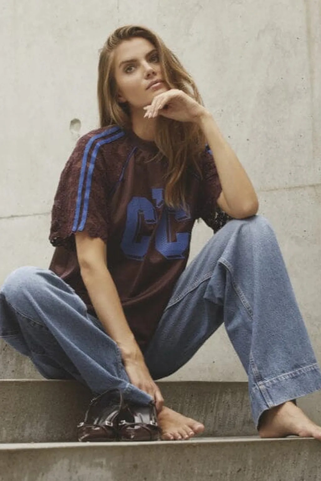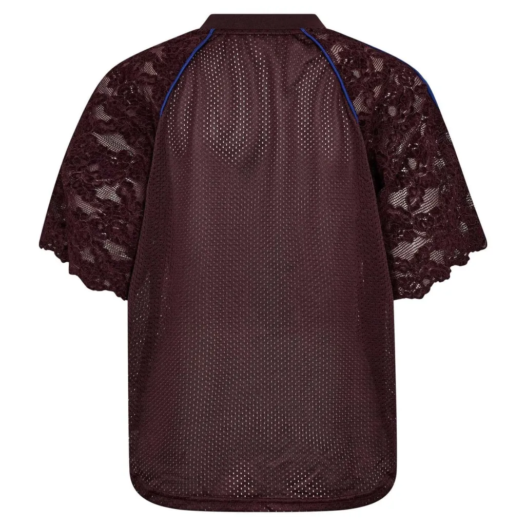 T-shirt fra Co´Couture i blå nuance med et stort C’Ctryk på forsiden. Blonde detaljer på ærmerne og blå striber giver T-shirten et grafisk udtryk.