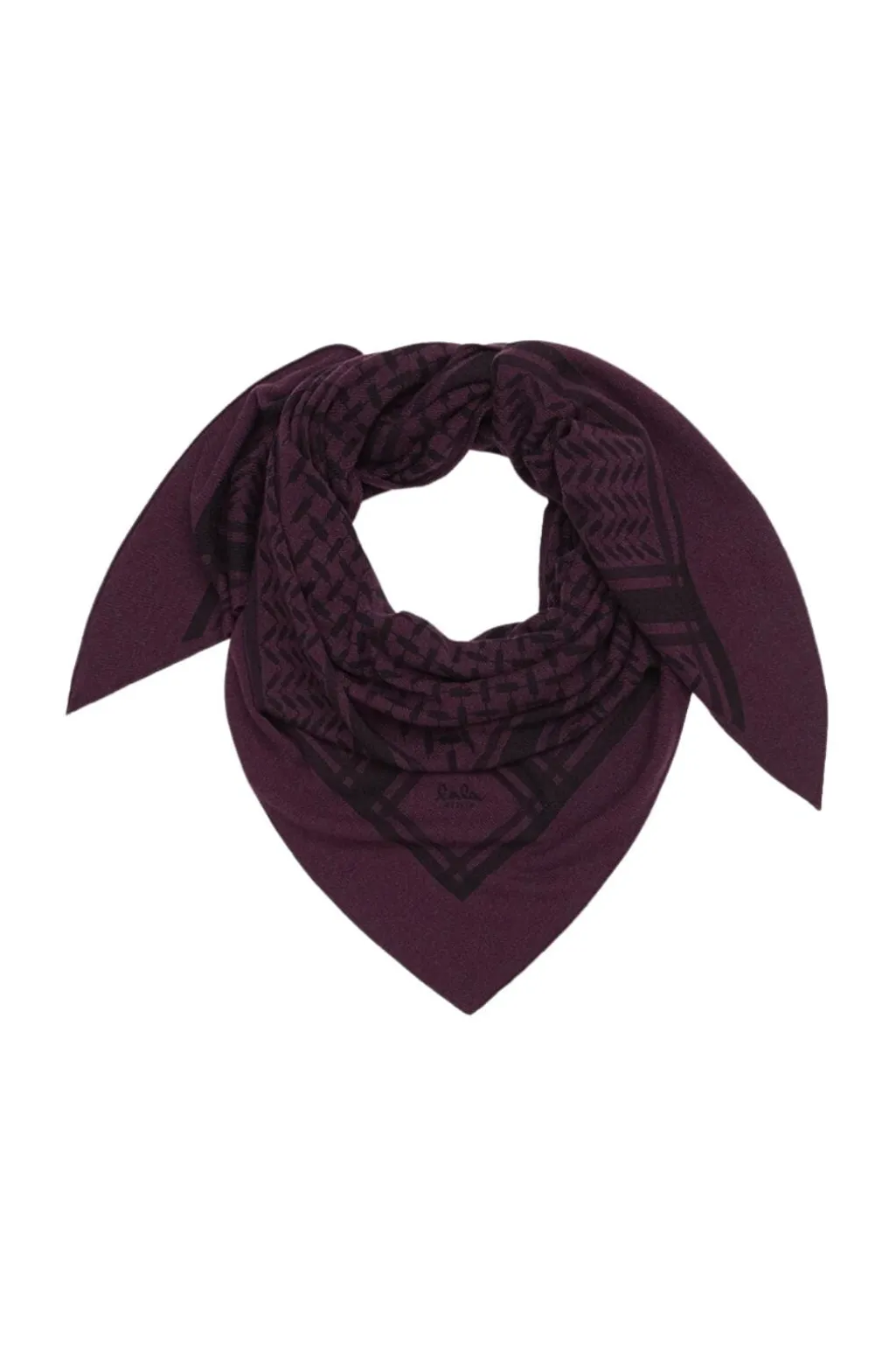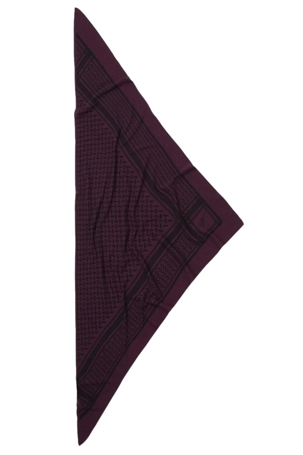 Trekantet tørklæde fra Lala Berlin i cashmere med sildebensmønster og print. Den dybe bordeauxfarve med sorte detaljer skaber et markant design med grafiske mønstre.