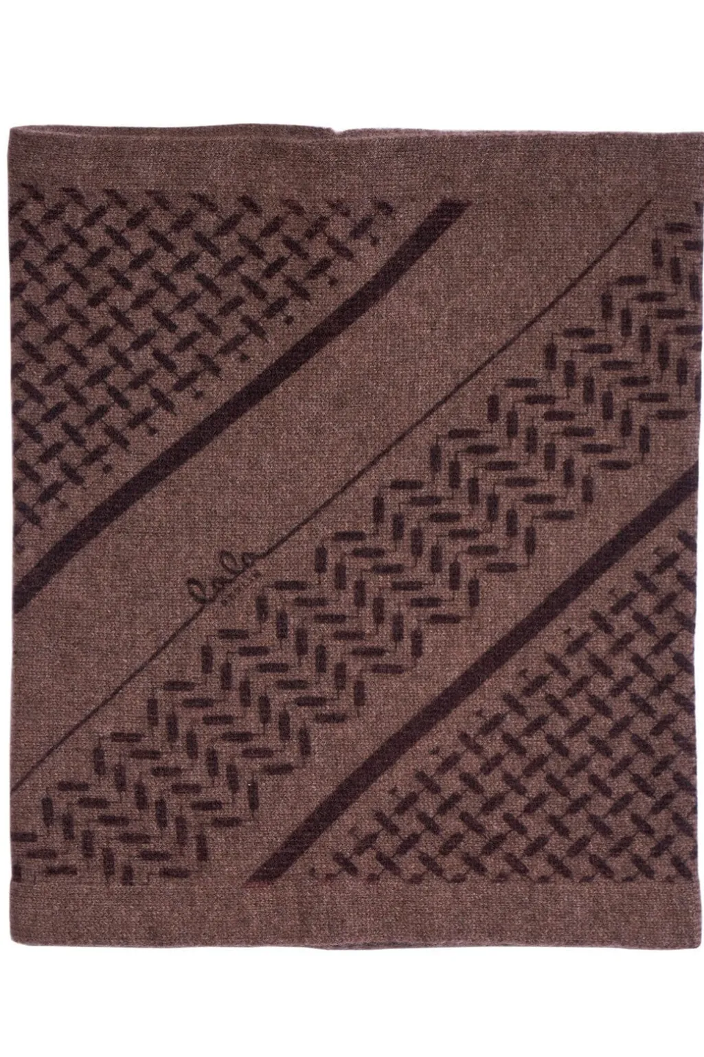 Brunt tørklæde fra Lala Berlin i rørdesign. Tørklædet har det karakteristiske Trinity-mønster og er fremstillet i brun Dune-farve.