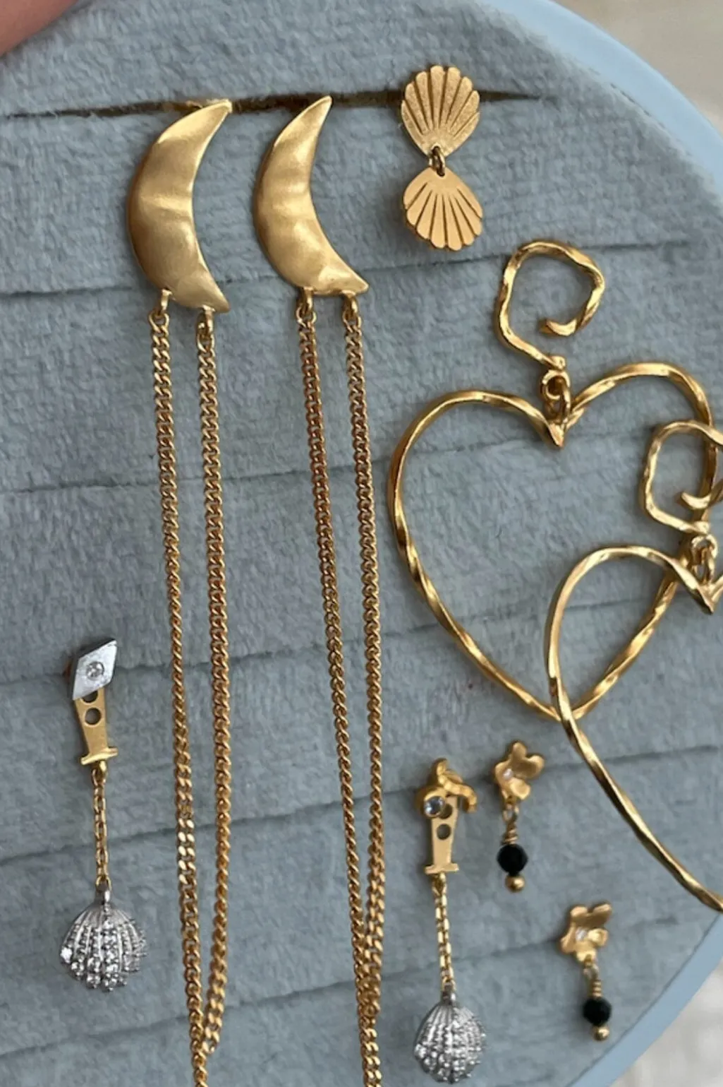 Øreringe fra Stine A med to muslingeskaller i et rillet design. De to skaller er forbundet med et lille led, der giver smykket bevægelse og dybde.