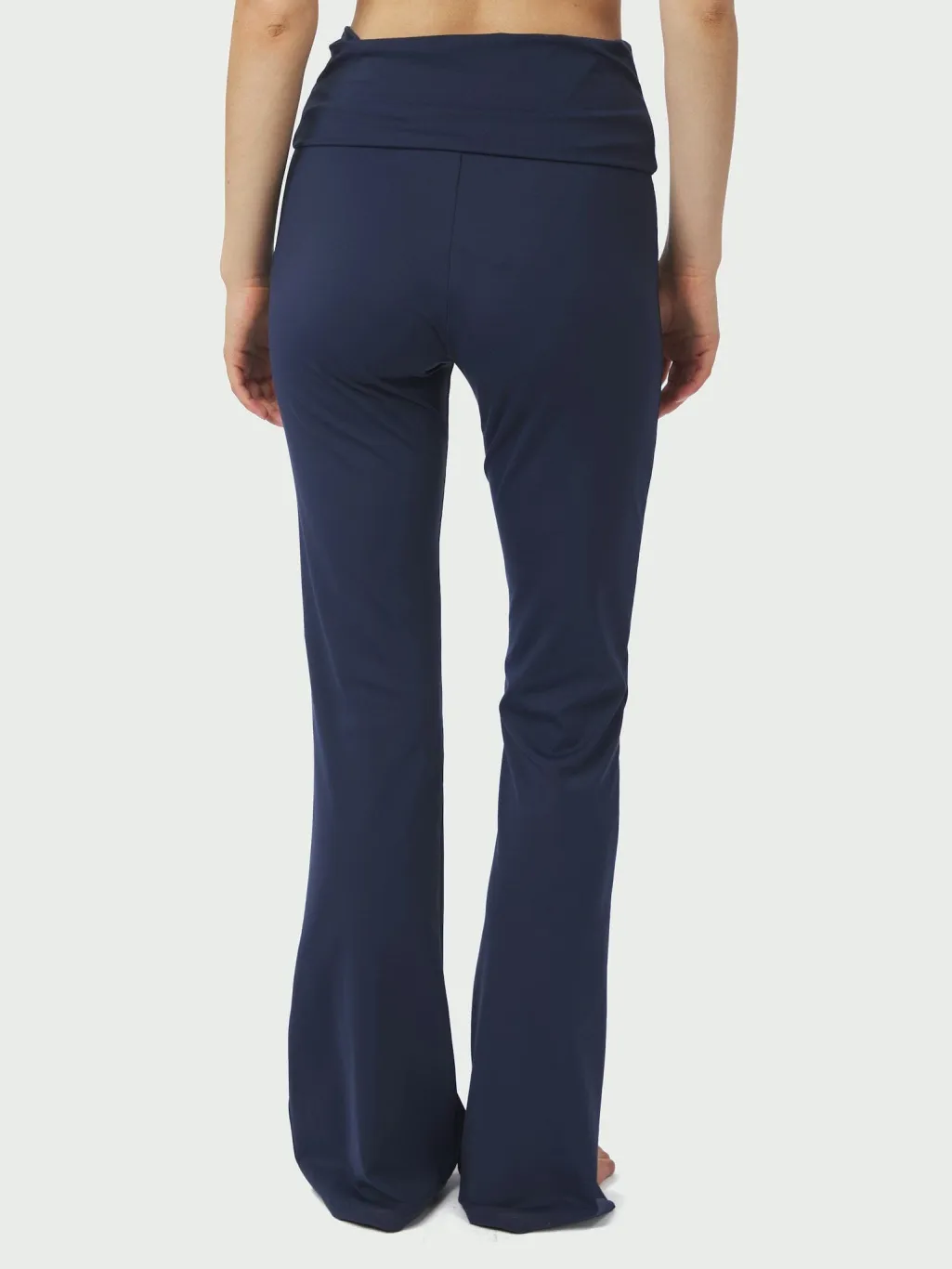 Mørkeblå leggingsbukser fra Neo Noir. Bukserne har en høj talje, slim fit-pasform og flared ben. Materialet er 75% nylon og 25% elastan.