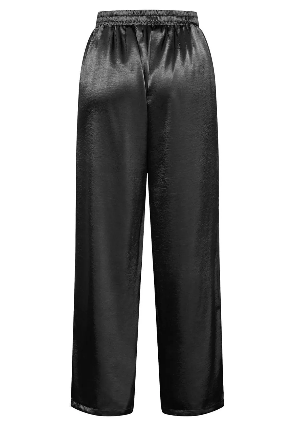 Sorte bukser fra Sisters Point i satinlignende stof. Bukserne har en gulvlang længde og er velegnede til både festlige og formelle lejligheder.