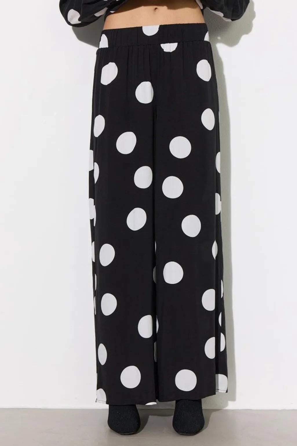 Hunkøn Vicky Trousers er bukser med lige ben og mellemhøj talje, der har en bred, dækket elastik i taljen.Den bløde viskose er let og luftig med en vidunderlig fornemmelse.Vicky Trousers er 100% viskose.