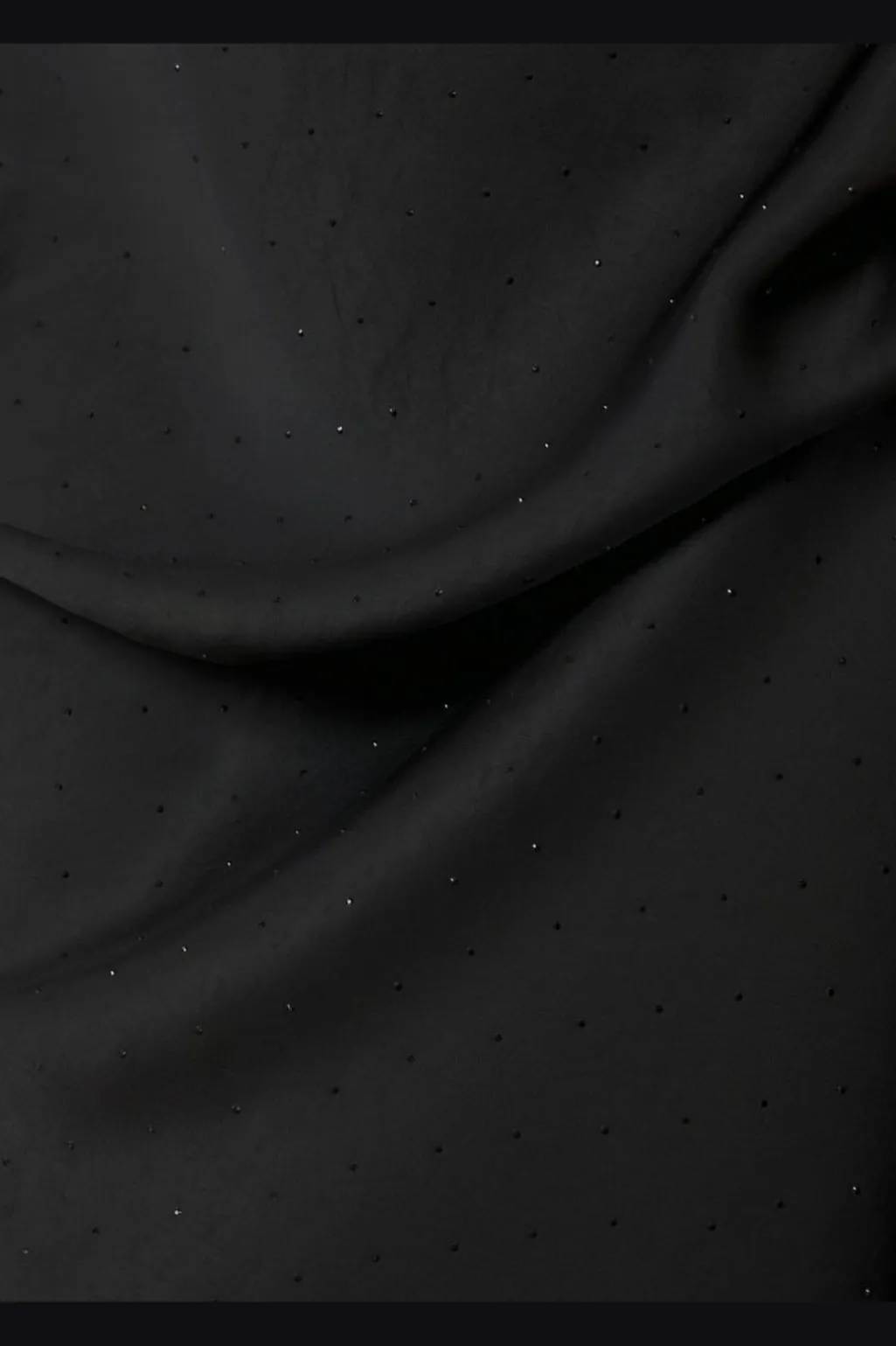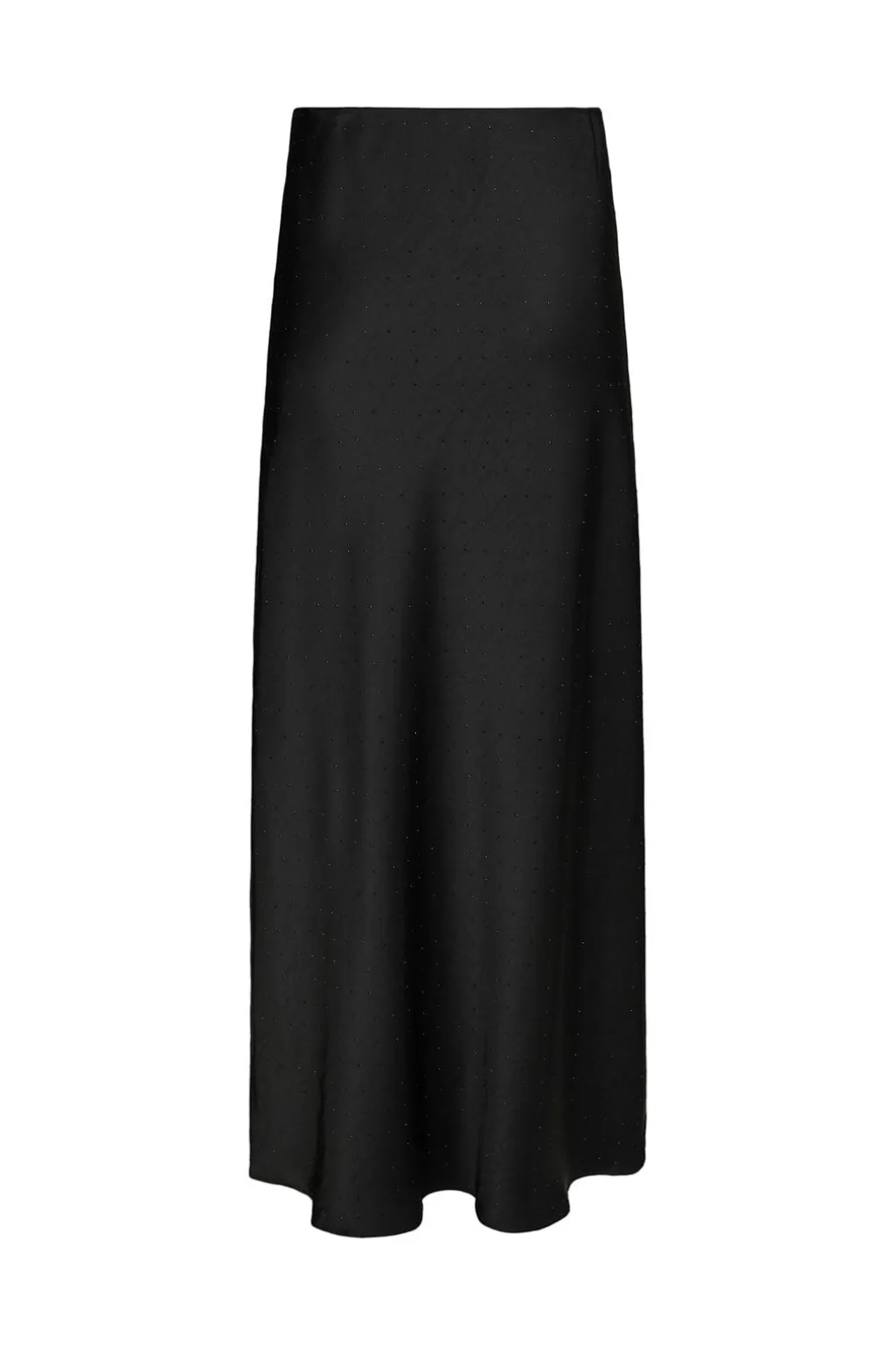 Sort satinnederdel fra Neo Noir, lavet af tung satin med pailletter i polkaprikket mønster. Nederdelen passer til festlige og formelle begivenheder.