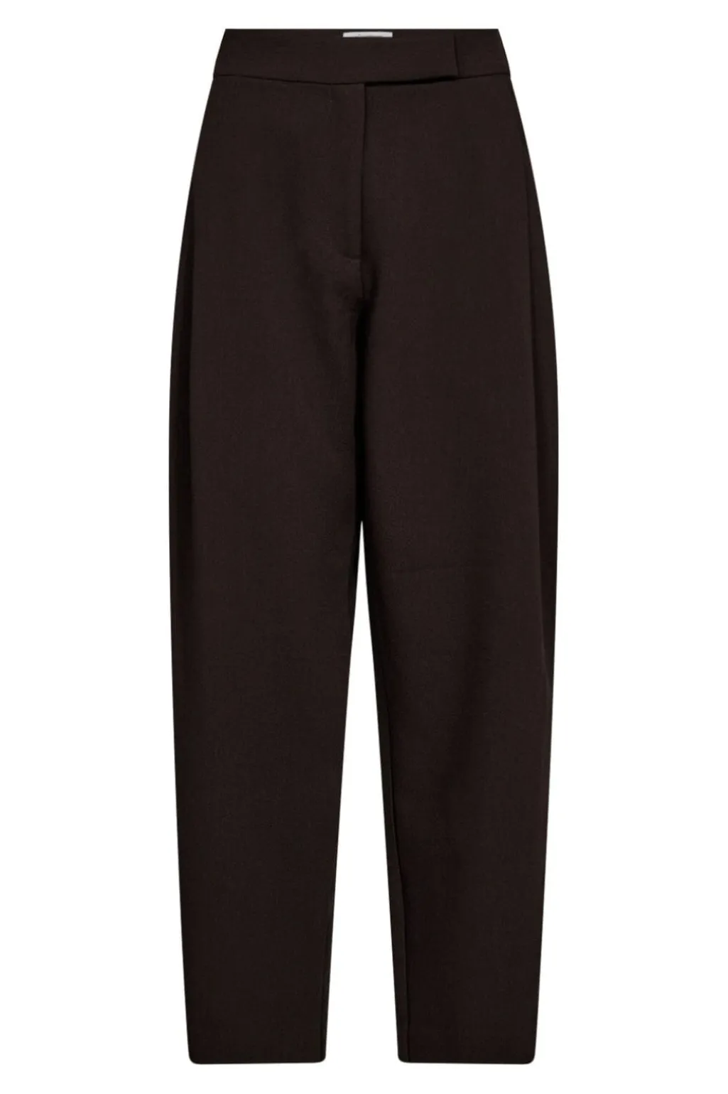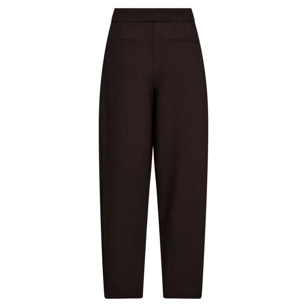 Mørkebrune bukser fra Co´Couture med folder foran. Bukserne har en høj talje og en løs pasform, der giver bevægelsesfrihed.