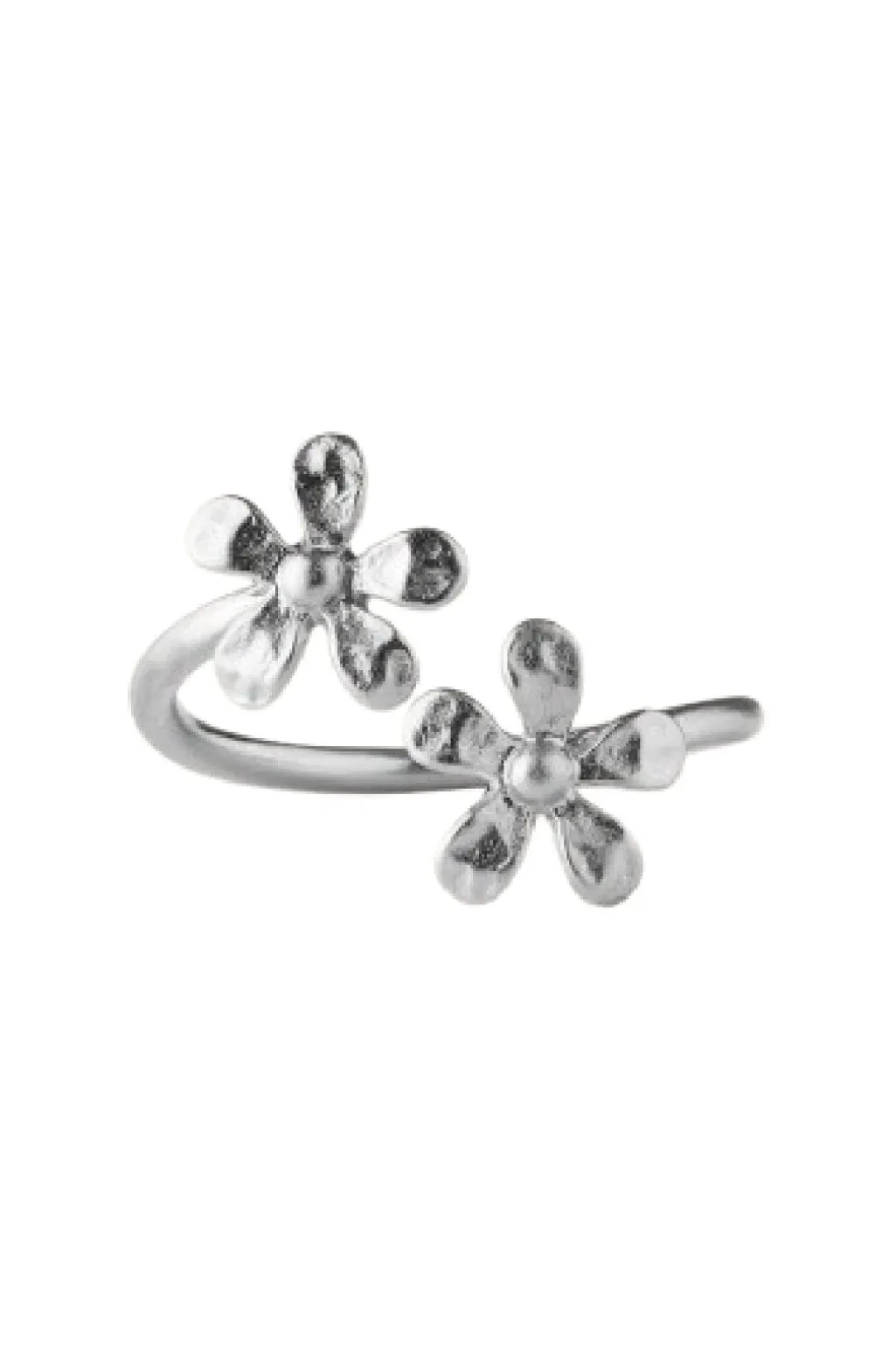 Sølvring fra Pernille Corydon med to valmueblomster i certificeret genanvendt sølv. Ringen har et åbent design med detaljerede blomster i hver ende.