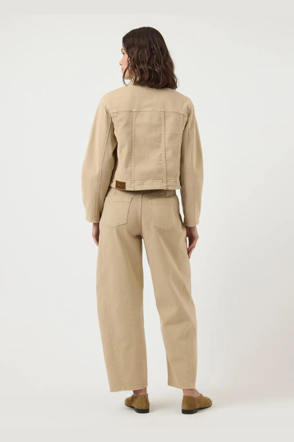 Pak dig ind i overtøj, der blander sofistikeret design med hverdagslethed, perfekt til enhver årstid eller lejlighed.Denne style er lavet af en bomuldsblanding, som kommer i en twillvævning, der giver det klassiske denimlook. Twillvævningen bidrager også til stoffets slidstyrke.- Produkttype: Jakke – Hals: Spredt krave – Lukning: Knaplukning – Længde/størrelse: Cropped