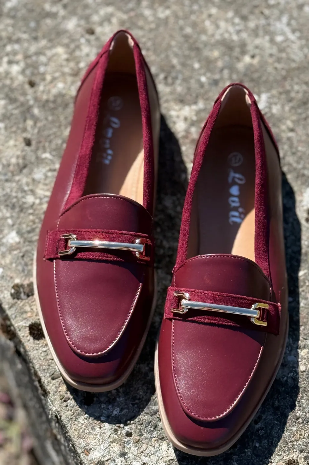 Røde loafers fra Bloom i en dyb rød nuance med bordeauxundertoner. Skoene har en mandeltåform og flade hæle.