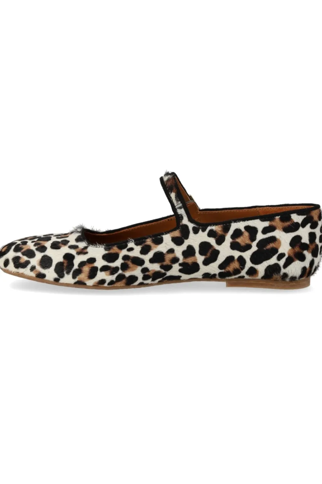 Ballerinaer fra Angulus med leopardmønster og sorte detaljer. Skoene har en rund tå og spænde-lukning over vristen, der giver god tilpasning til foden.