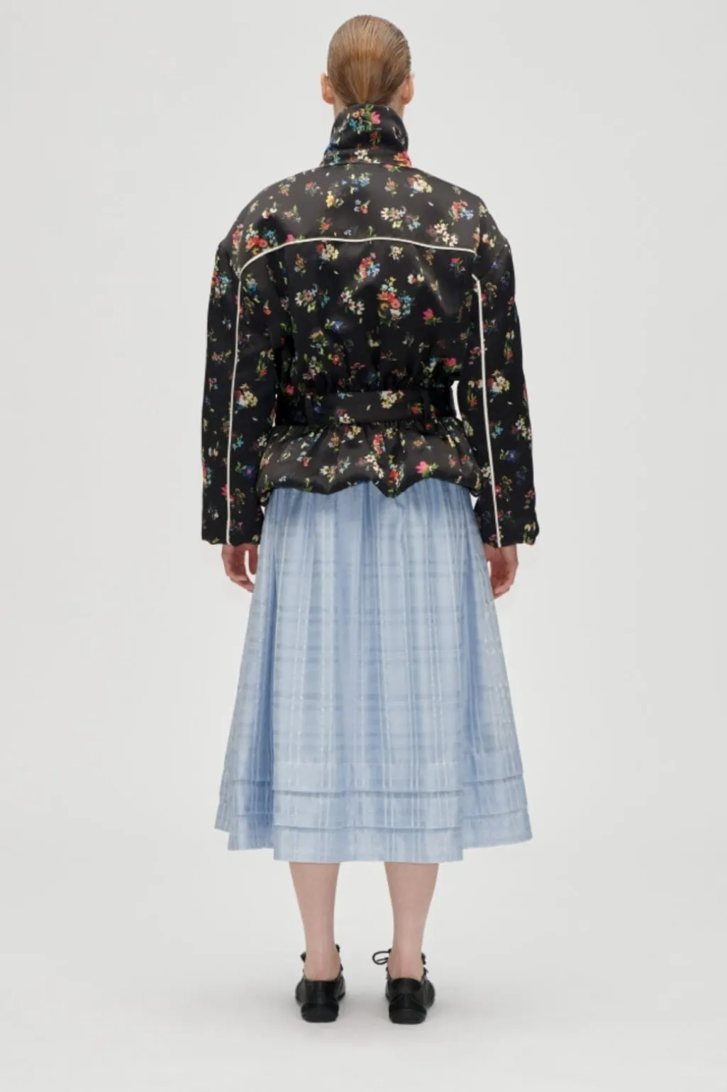 Model: Sg-aw25-j056-2407 – 2407 Satin Ruffle, Cinched Aviator Bomber Jacket