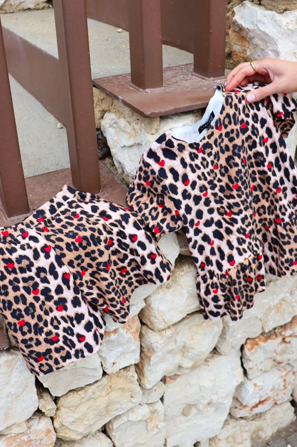 - Beige leopardprint med hjerter
