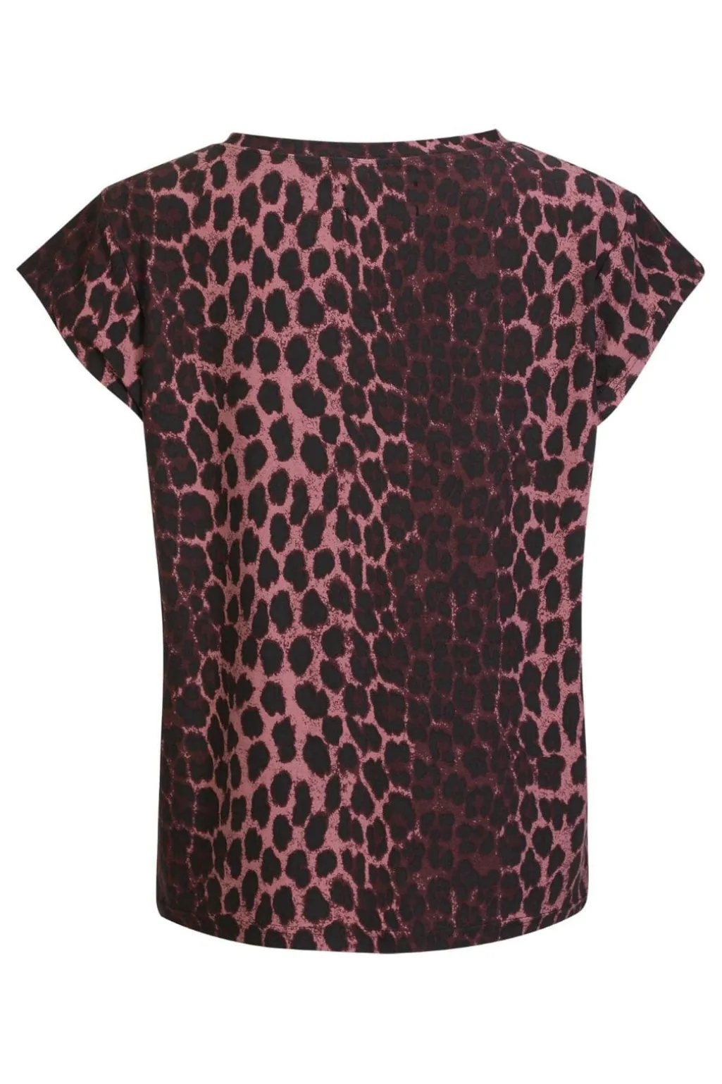 T-shirt fra Liberte med leopardmønster i bordeaux og sorte nuancer. Mønsteret giver t-shirten et grafisk udtryk med kontrast mellem de mørkerøde og sorte pletter.