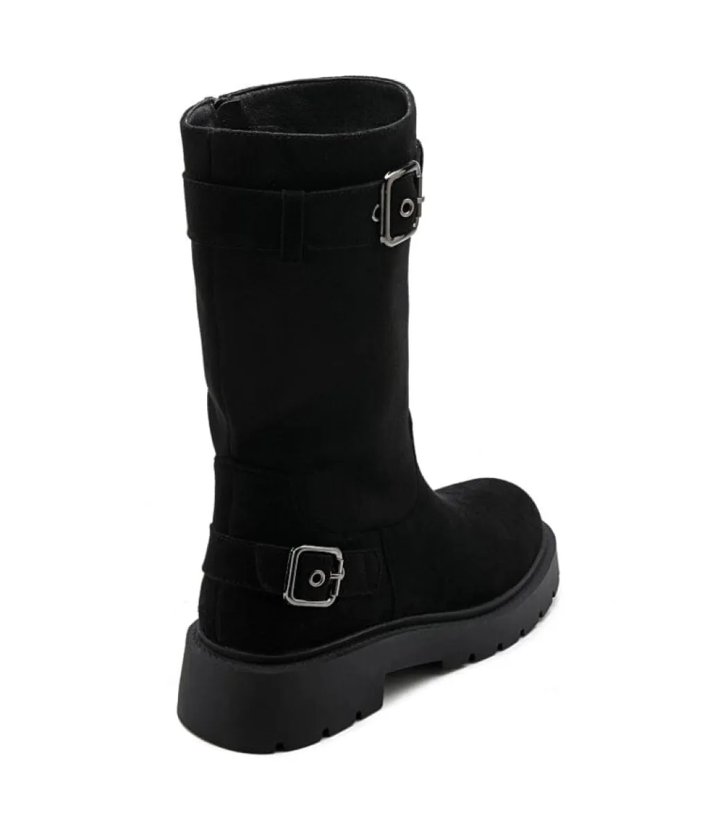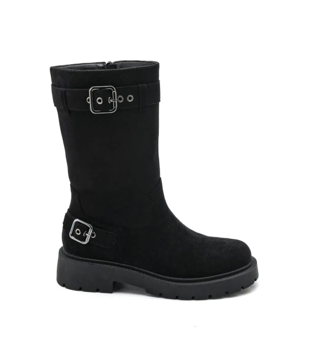 Sorte støvler fra Bloom i syntetisk materiale. Støvlerne har en blokhæl, rund tå og er velegnede til afslappede lejligheder.