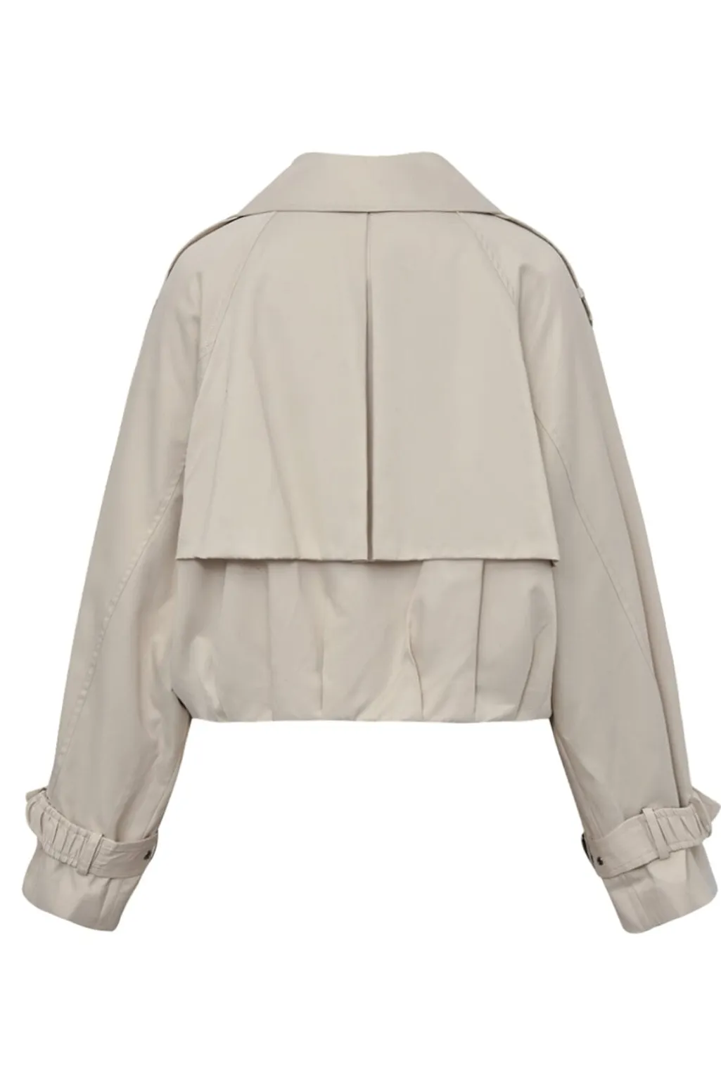 Sandfarvet jakke fra Gossia, lavet af polyester med en foring af polyester og viskose. Jakken har en skjortekrave og lange ærmer.