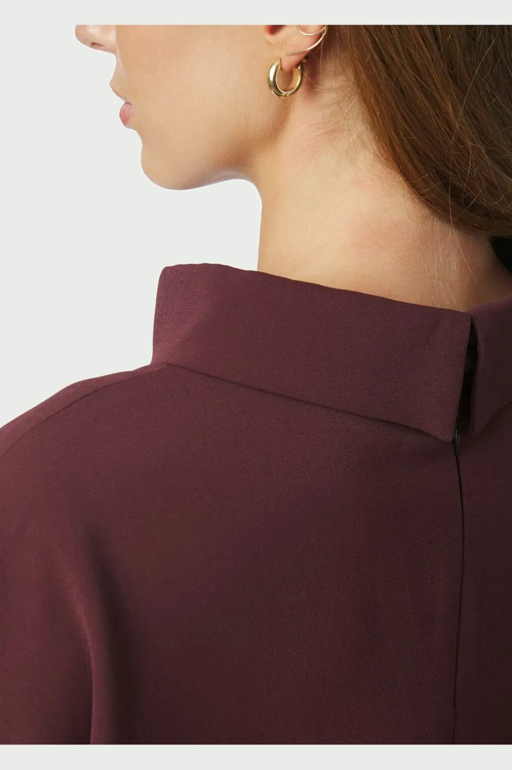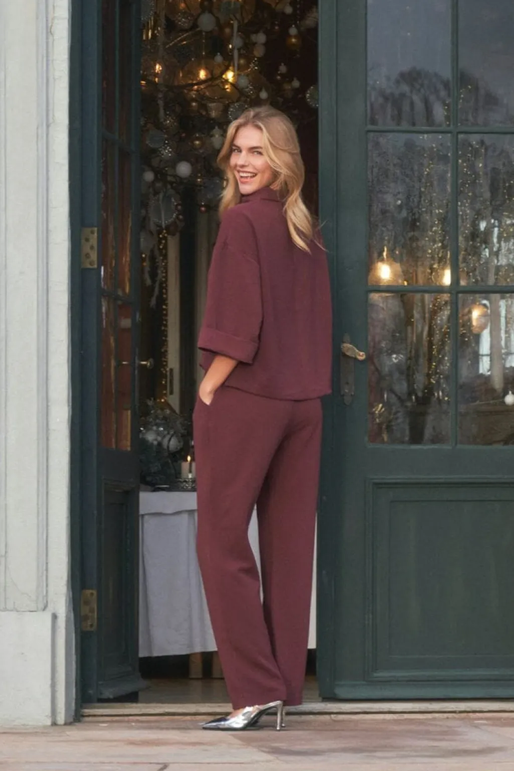 Bordeauxfarvet jumpsuit fra Neo Noir i blød crepe-kvalitet. Den har brede ben, praktiske lommer og en høj halsudskæring. Lynlåslukningen i ryggen gør den nem at tage af og på.