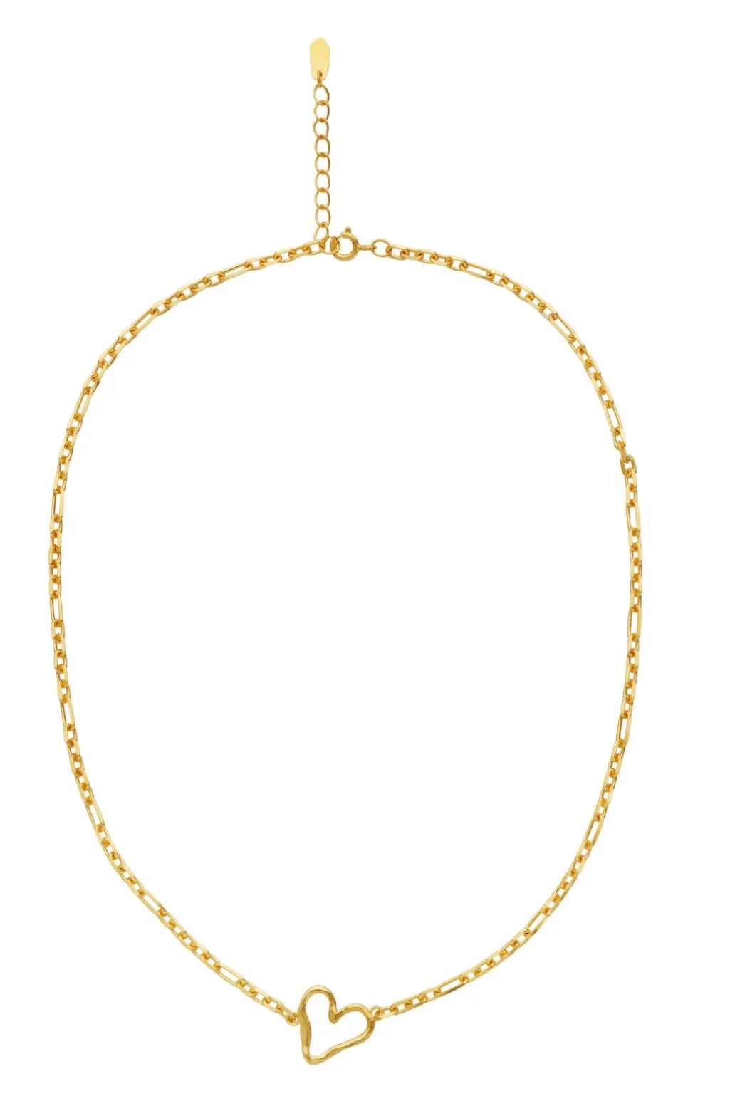 Guldhalskæde fra Maanesten med et hjerteformet vedhæng. Kæden har et sammenkoblet design og passer til både fest og bryllup.