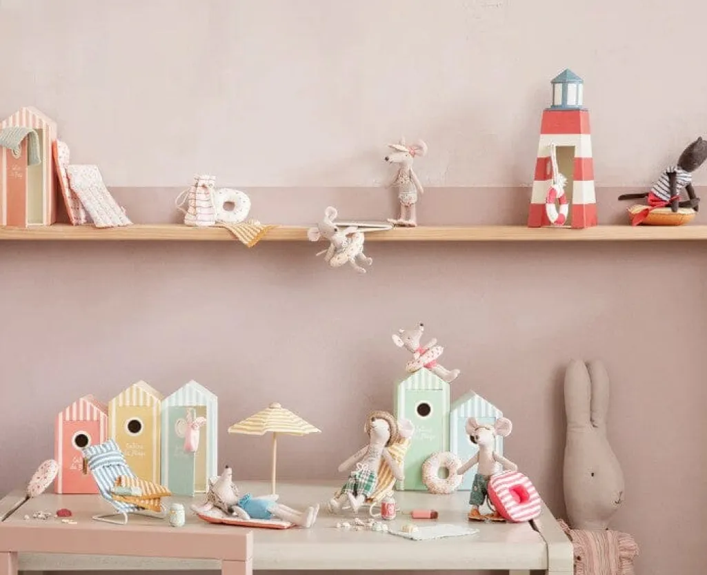 Legetøj fra Maileg er kendt for sin charme og kvalitet, hvilket også afspejles i denne taske. Model: Maileg – Bag W. Beach Essentials.