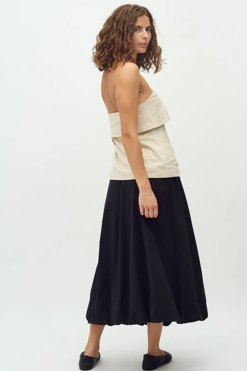 Sort nederdel fra MbyM i kalvelængde med flæsedetaljer. Nederdelen har en behagelig pasform med elastik i taljen og et enkelt design i sort.
