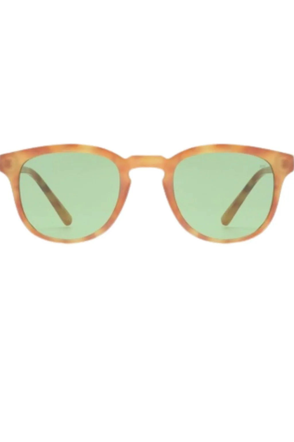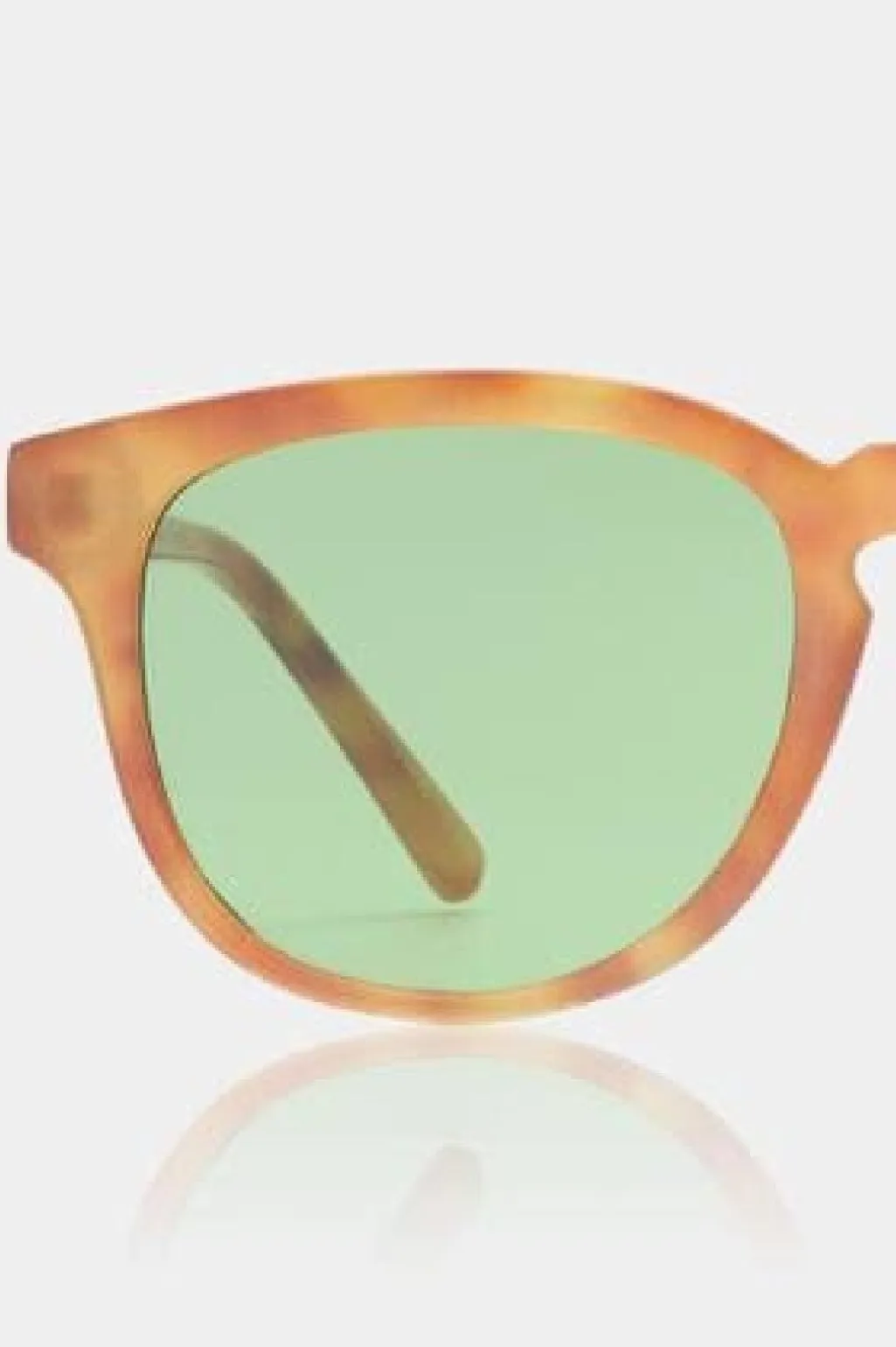Solbriller fra A. Kjærbede i brændt amber med grønne linser. Stellet har optiske hængsler i høj kvalitet og stænger med formbar metalkerne til individuel tilpasning.