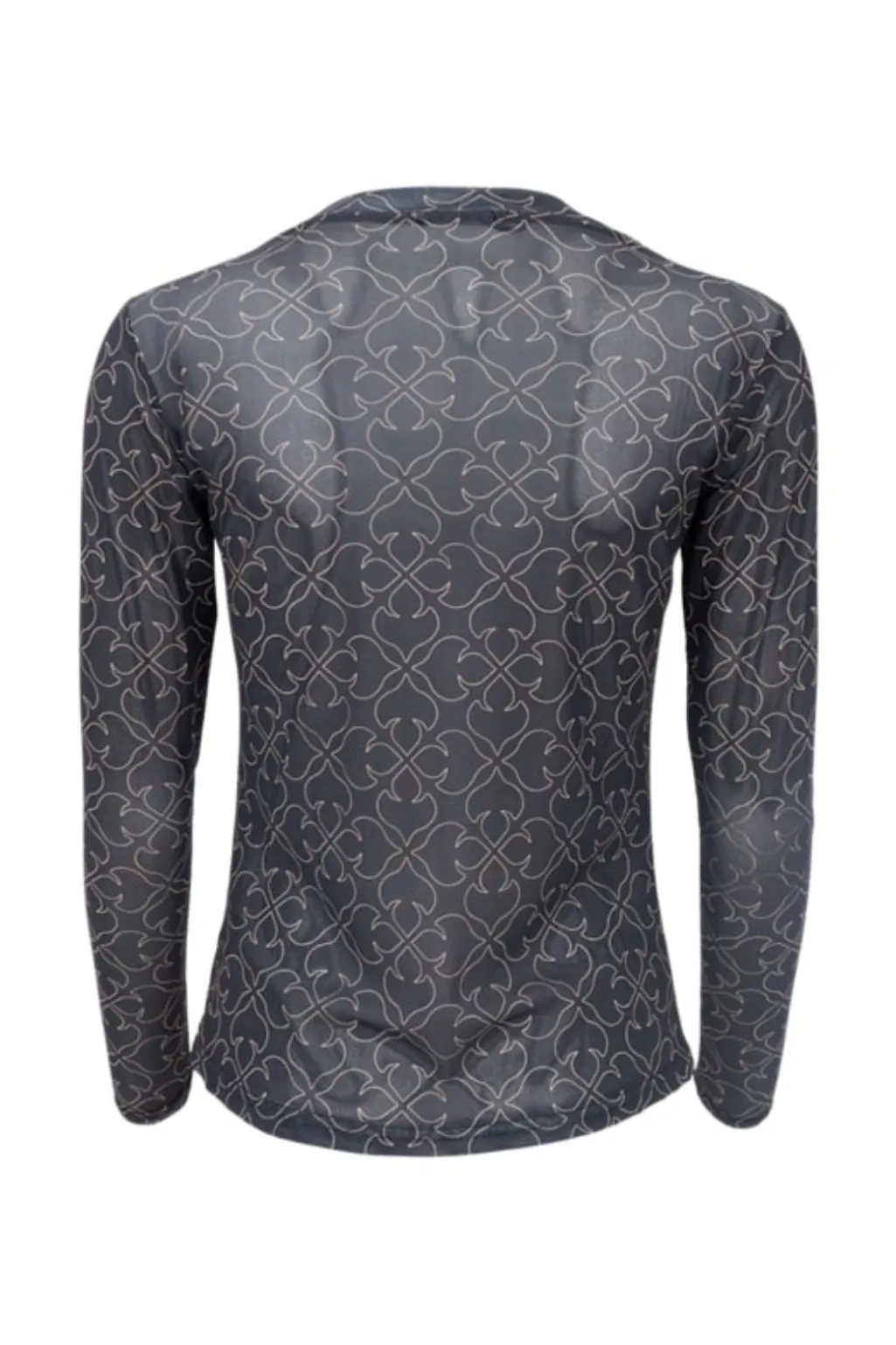 Sort mesh-bluse fra Black Colour med gennemsigtigt design. Blusen har en rund halsudskæring og lange ærmer. Det lette stof giver mulighed for at style med forskellige underlag.