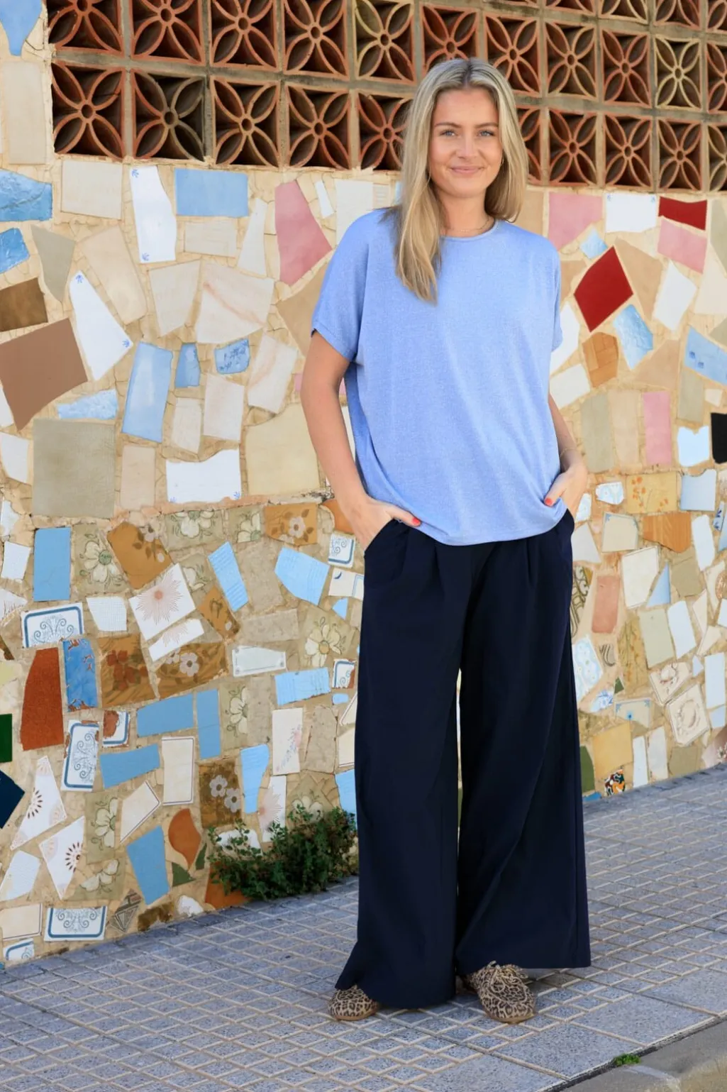 Mørkeblå bukser fra Black Colour med bred benform og høj talje med folder. Bukserne har lommer i siderne og en afslappet pasform, der giver god bevægelsesfrihed.