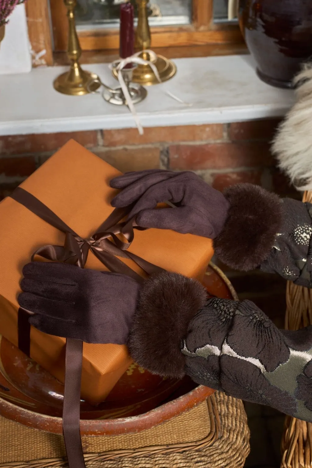 Mørkebrune handsker fra Black Colour med plysset pelskant ved manchetten. Handskerne har et enkelt design i en varm mocca-nuance, der matcher godt med vintergarderoben.