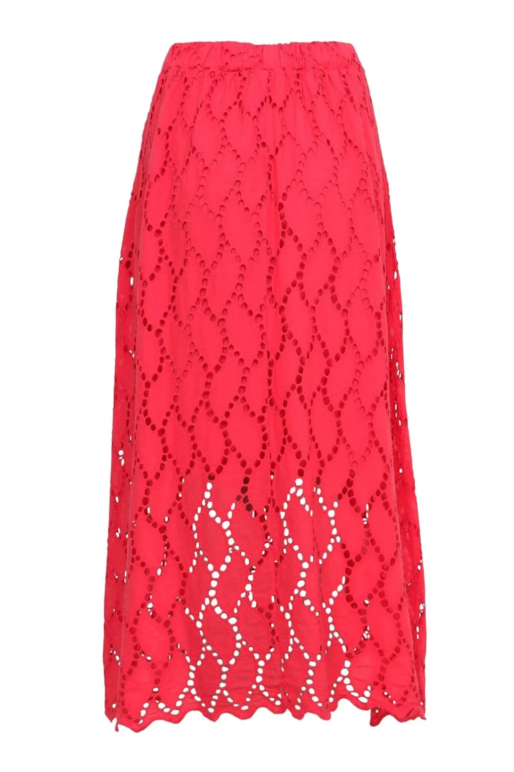 Rød nederdel fra Black Colour med blonder og udskæringer. Den lange model har et let og luftigt design med dekorative åbninger i stoffet.