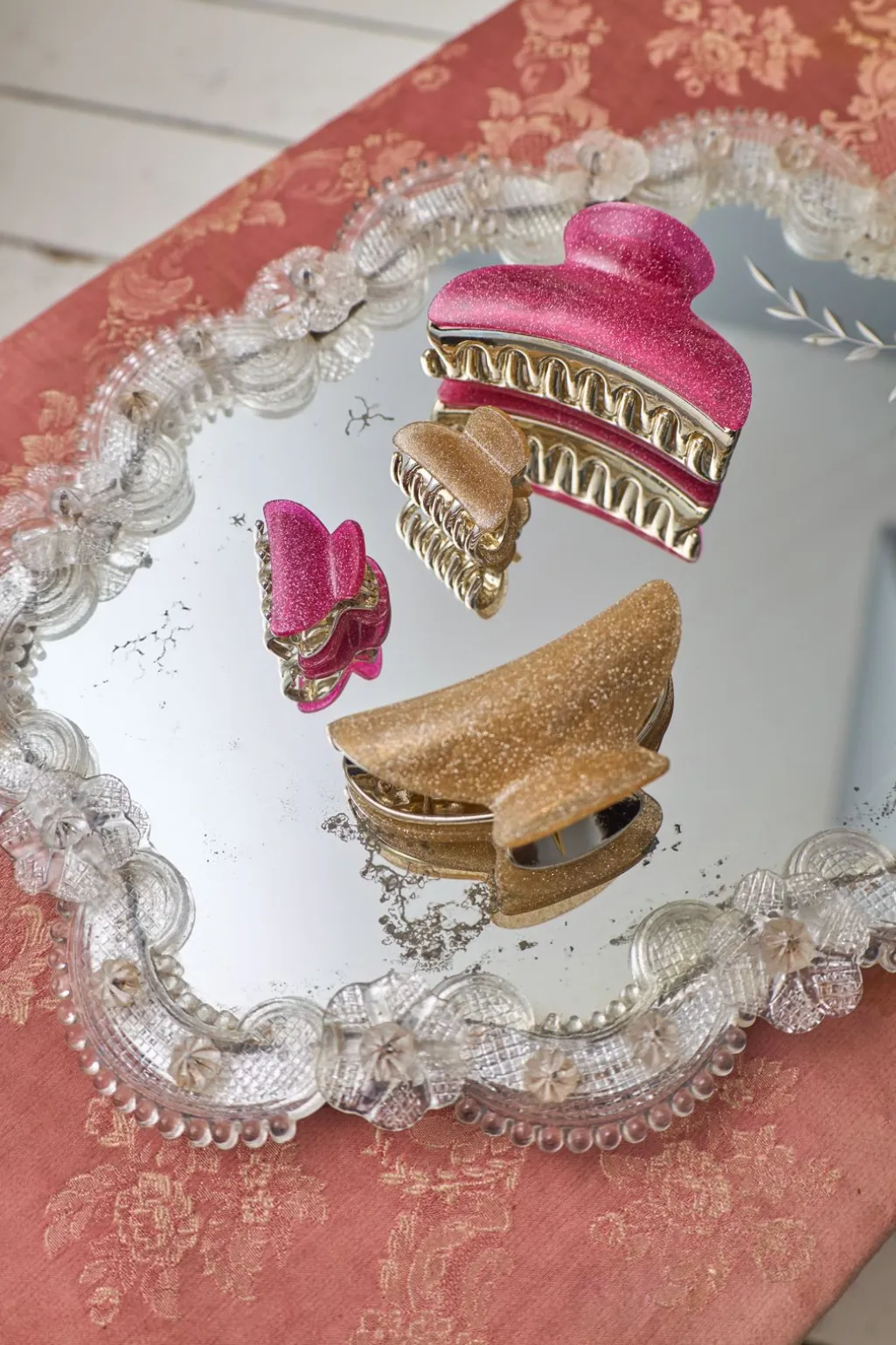 Lille hårklo fra Black Colour har en glitrende gylden overflade. Den er designet med tænder og en fjederlignende mekanisme til at åbne og lukke.