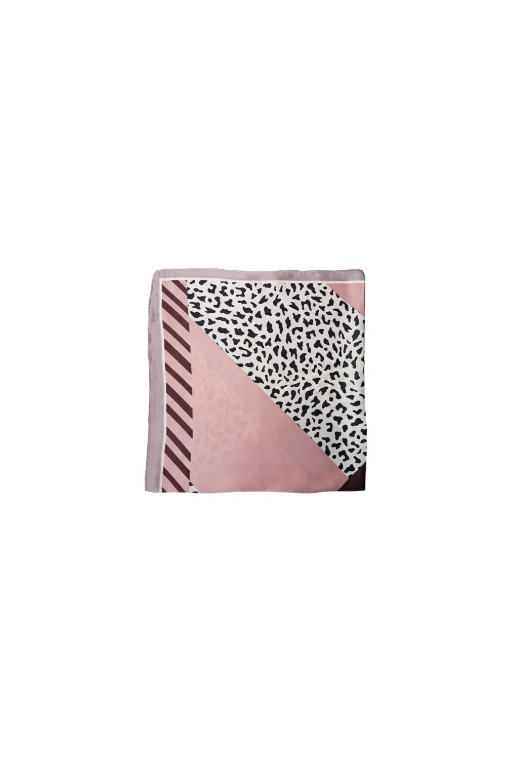 Mini tørklæde fra Black Colour i pink nuance med geometrisk og dyreprintmønster. Tørklædet kan bindes rundt om halsen som et halsbånd.