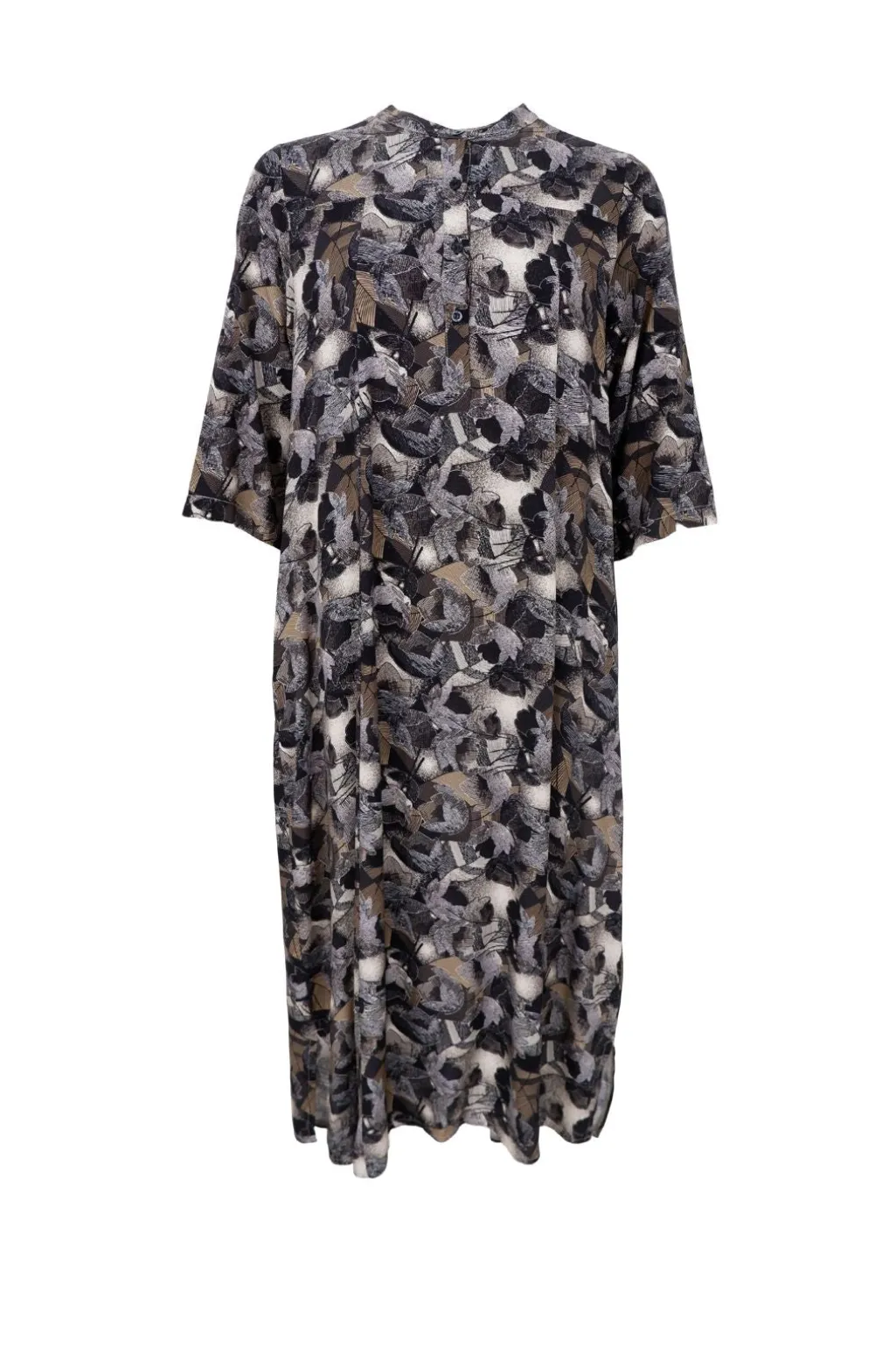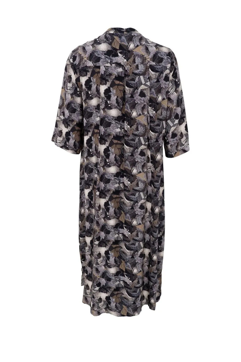 Skjortekjole fra Black Colour i sort med camouflage-mønster. Kjolen har en løs pasform og går til midt på læggen. Den er lavet af viskose med en blød overflade.