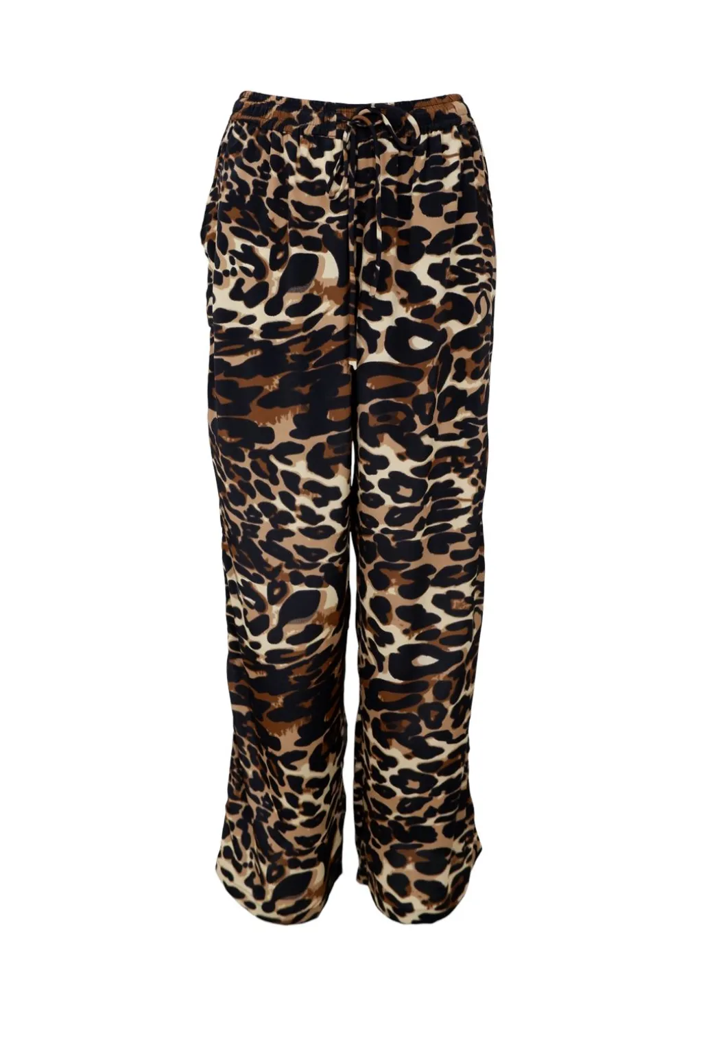 Bukser fra Black Colour med leopardprint i brune, beige og sorte nuancer. Den lige benstil og den elastiske talje giver en god pasform.