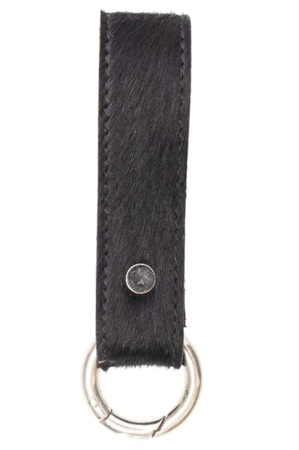 Sort nøgleholder fra Black Colour i læder med metalring og trykknap. Den sorte læderrem har en enkel og praktisk udformning med syninger langs kanterne.