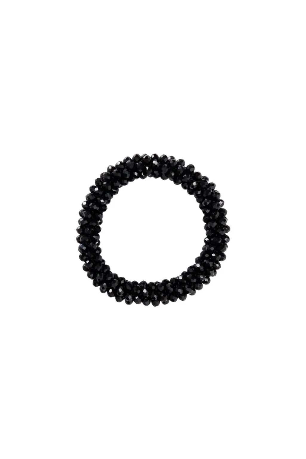 Sort armbånd fra Black Colour med facetslebne krystalperler. Armbåndet har en rund form med skinnende perler, der er sat tæt sammen i et dekorativt mønster.