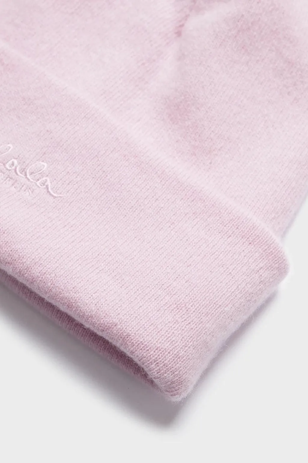 Lyserød beanie fra Lala Berlin, lavet af en cashmere-blanding. Beanien har et enkelt design med en foldet kant og et broderet logo.