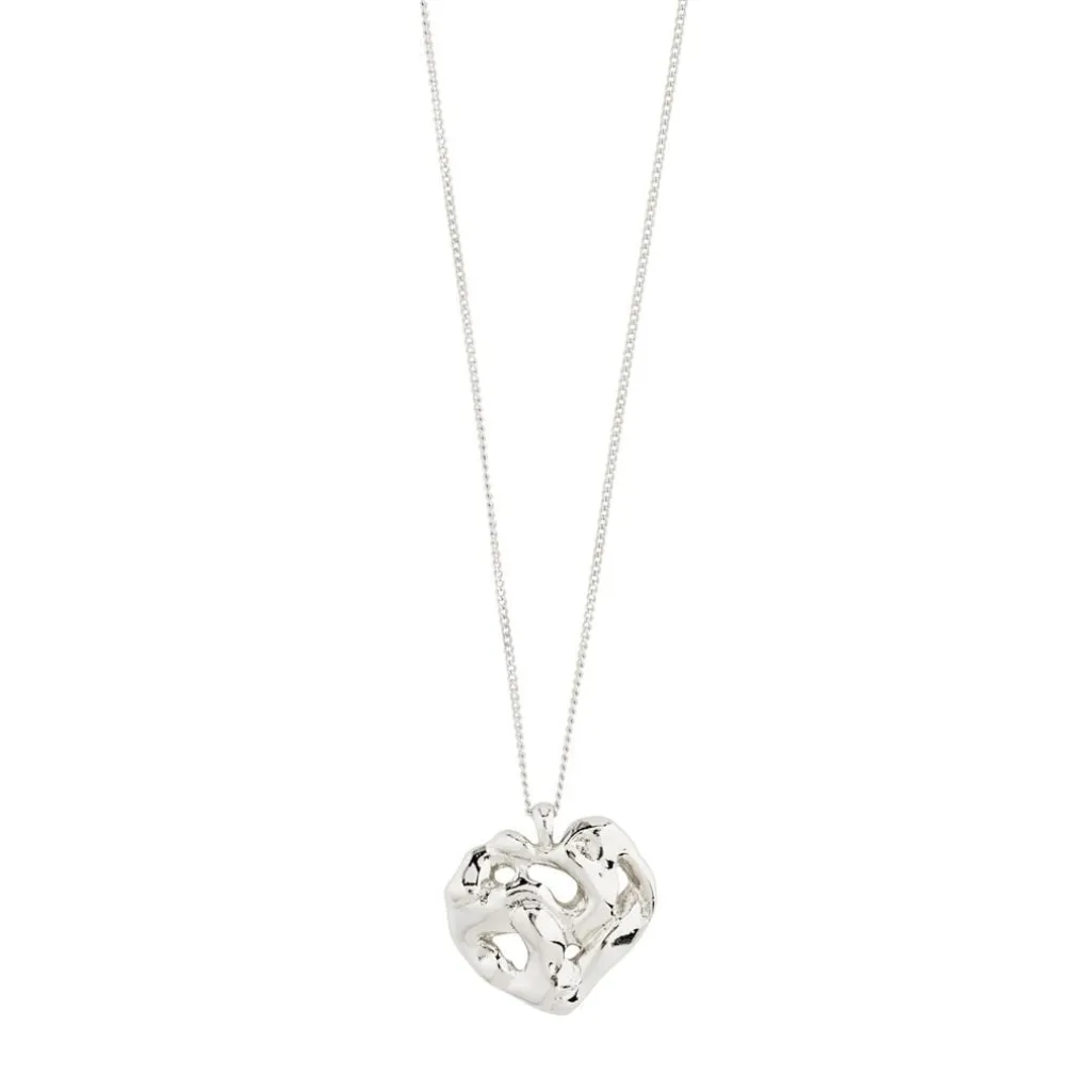 Sølvbelagt halskæde fra Pilgrim med et hjerteformet vedhæng i organisk design. Kæden har en tynd og enkel udformning med et struktureret vedhæng.