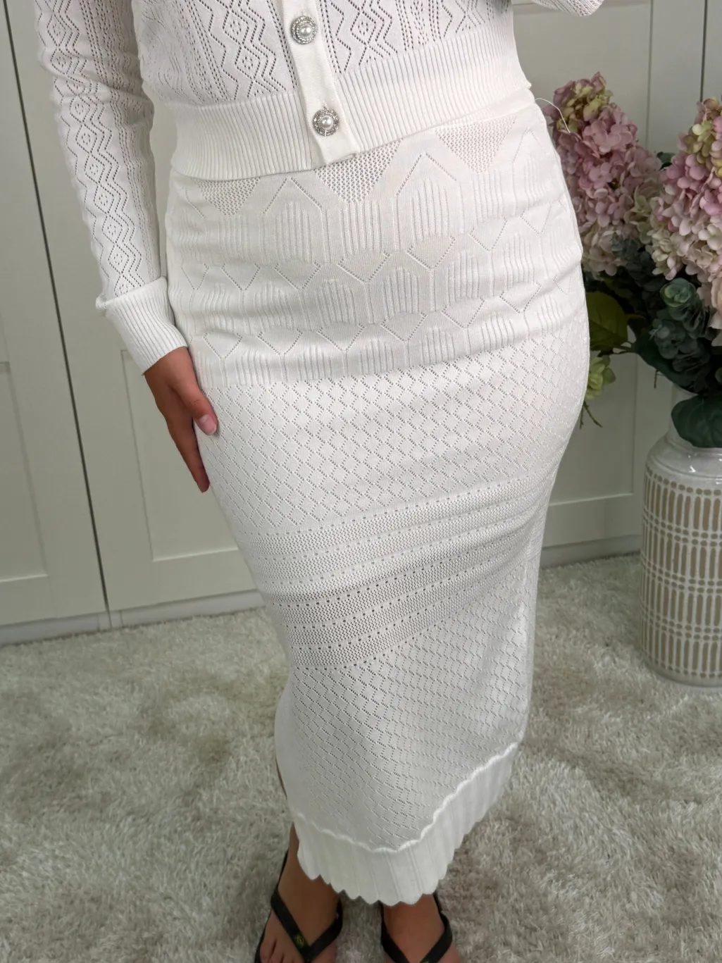 Hvid nederdel fra A-bee, lavet af viskose og polyester. Nederdelen har dekorative syninger og en højtaljet pasform med en slank silhuet.
