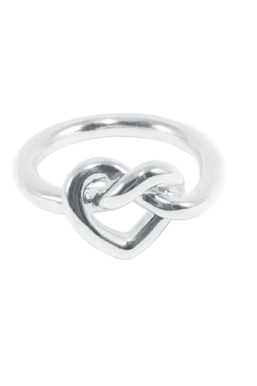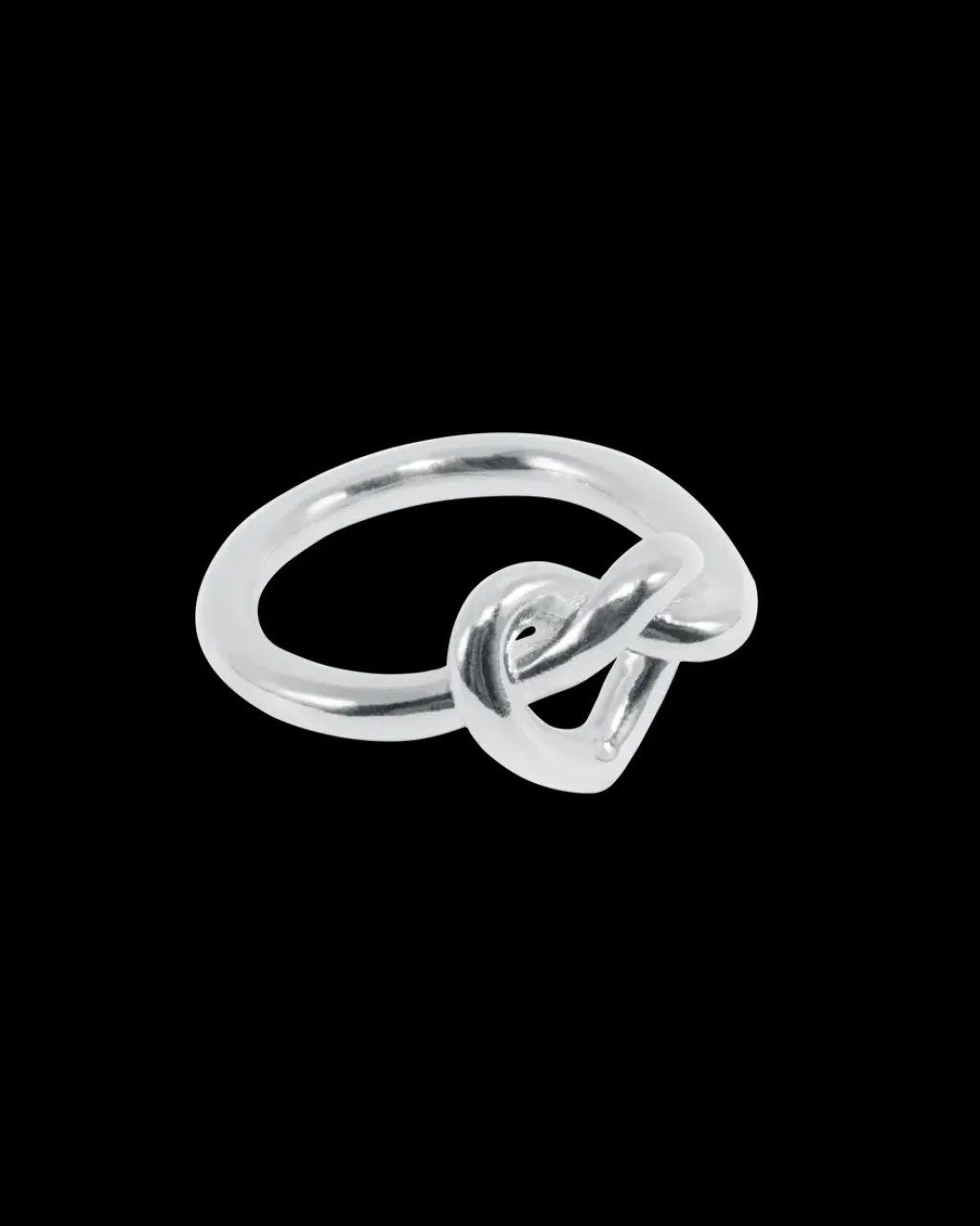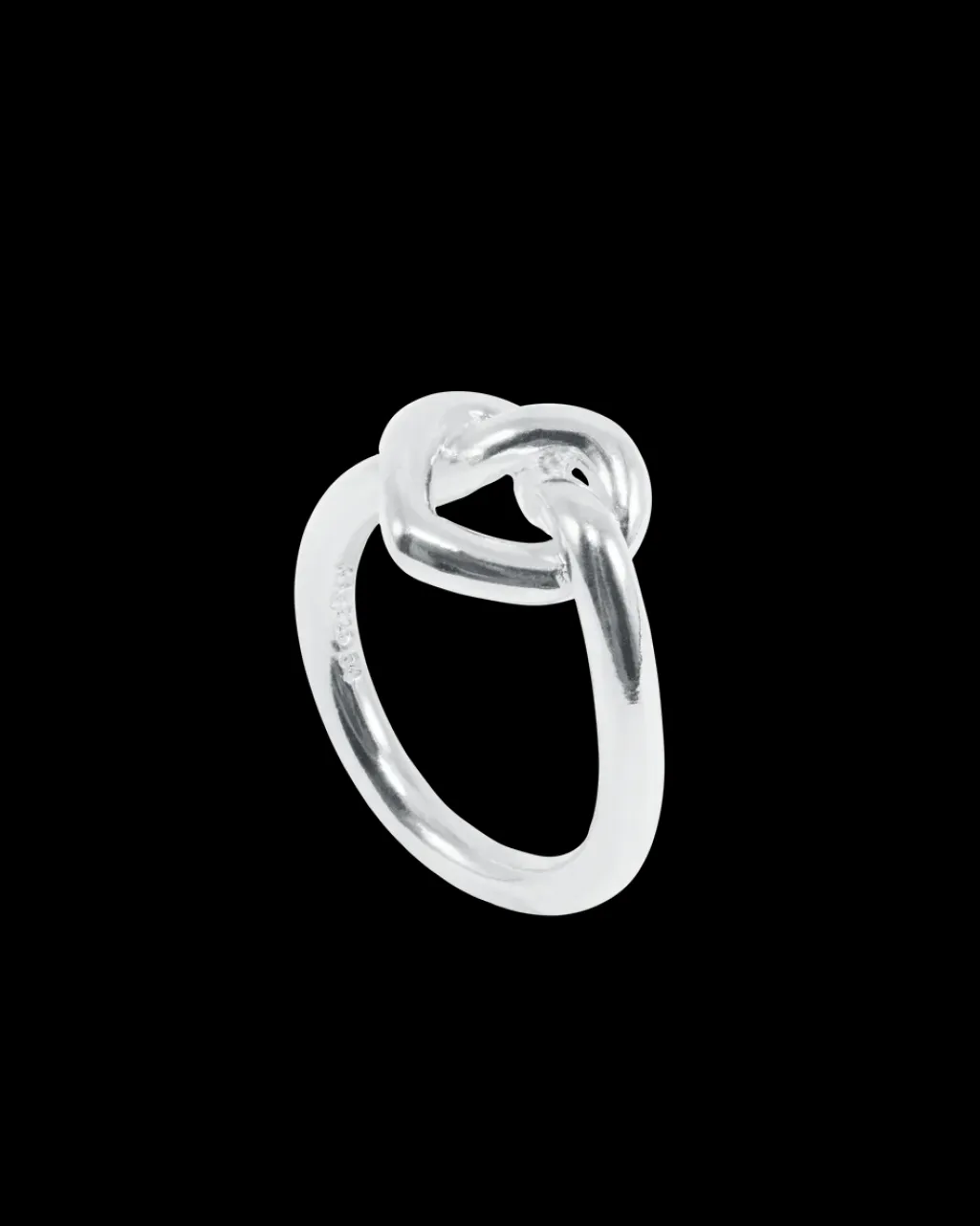 Ring fra Jane Kønig, lavet af sterlingsølv med et bundet hjerteformet design i midten.