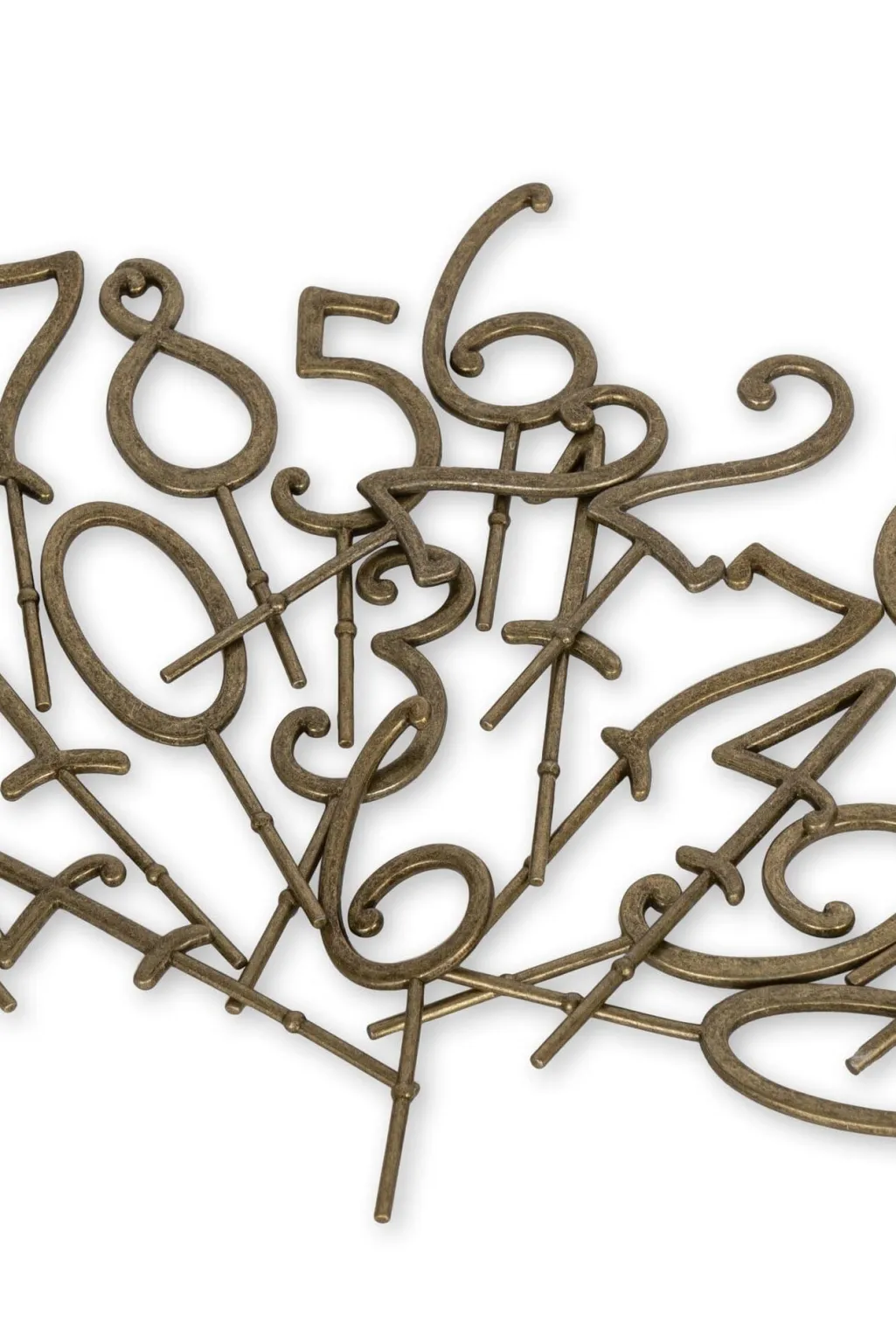 Fødselsdagstogtal fra Konges Sløjd, lavet af polyresin i guld- og bronzefarver. Tallene 0-9 har en dekorativ finish med krøllede detaljer.