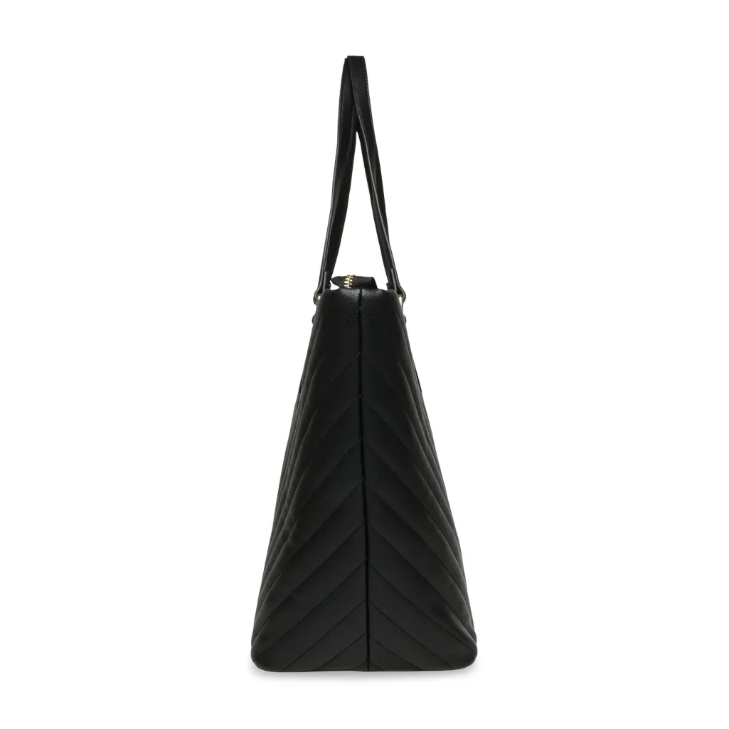 Sort shoppertaske fra Steve Madden i syntetisk materiale. Tasken har et rummeligt hovedrum og flere praktiske lommer med lynlås til organisering af dine ejendele.