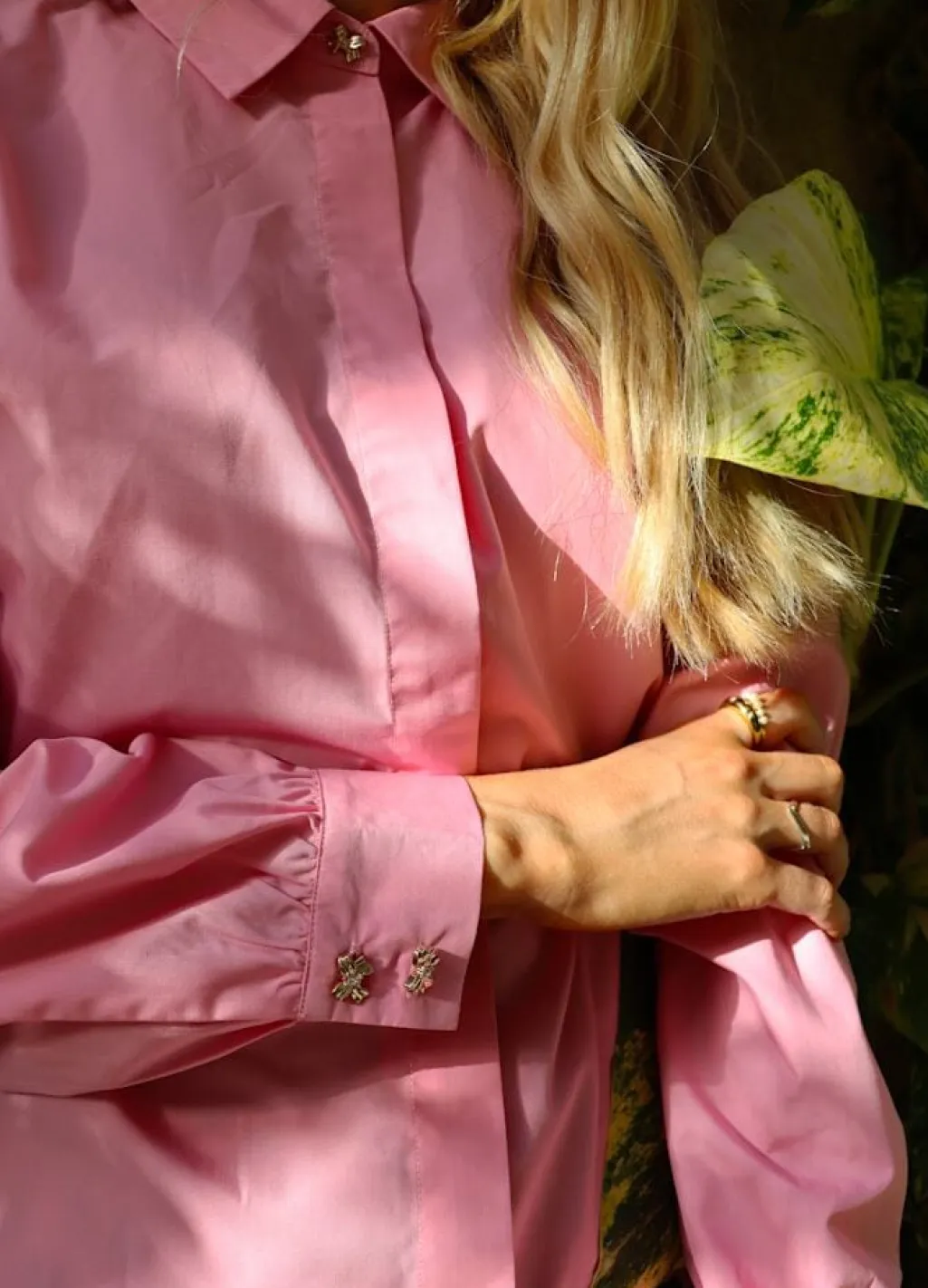 Pink skjorte fra Liberte med skjortekrave og lange ærmer. Skjorten har en stor sløjfe på ryggen og knapper foran. Den lyserøde farve giver skjorten et friskt udtryk.