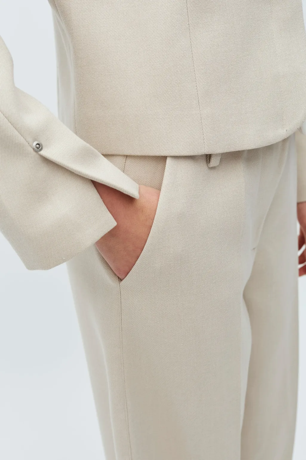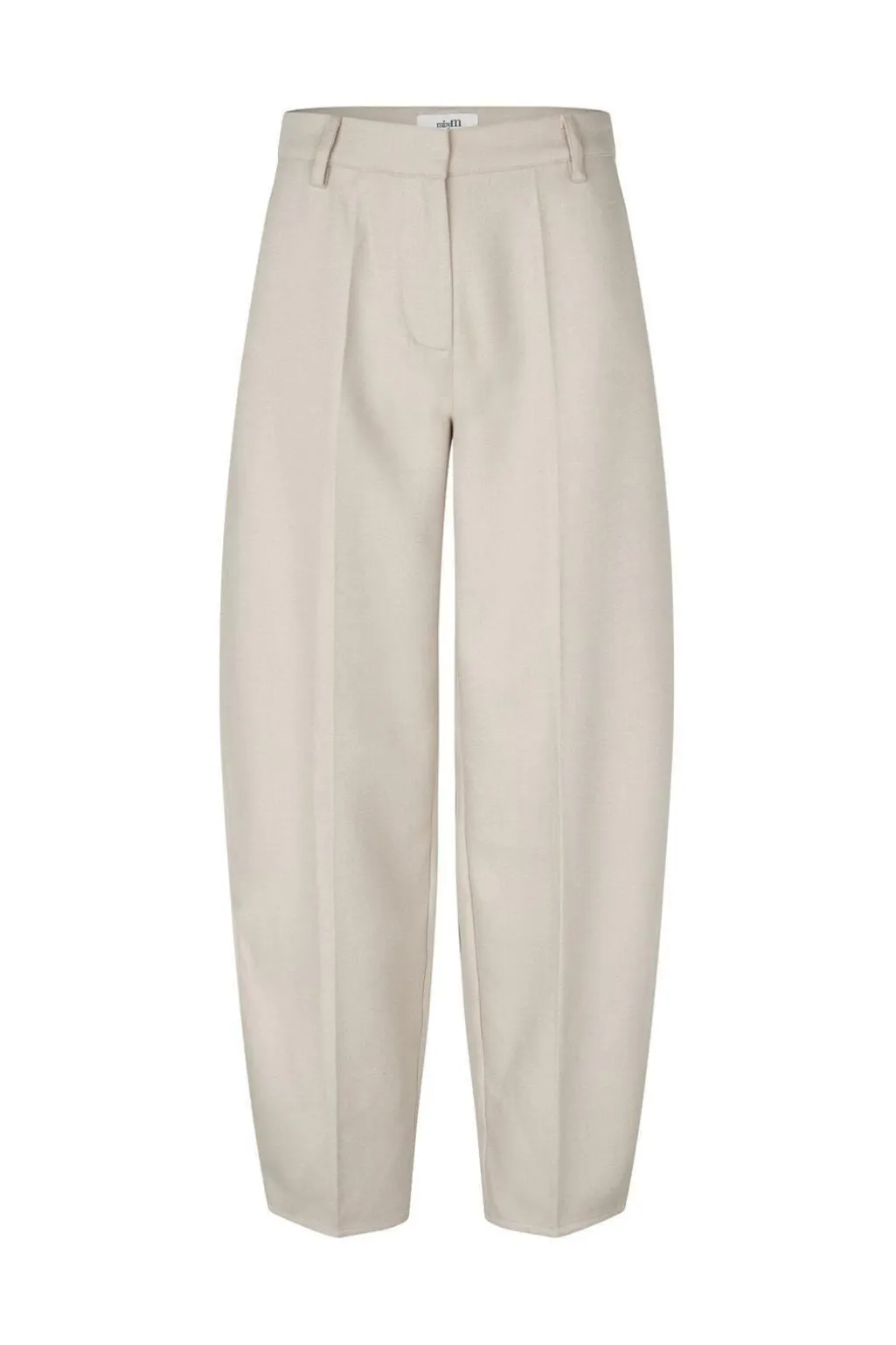 Løse bukser fra MbyM i en brun meleret farve. Bukserne er lavet af 70 % polyester og 30 % viskose med en høj talje og ankellængde.