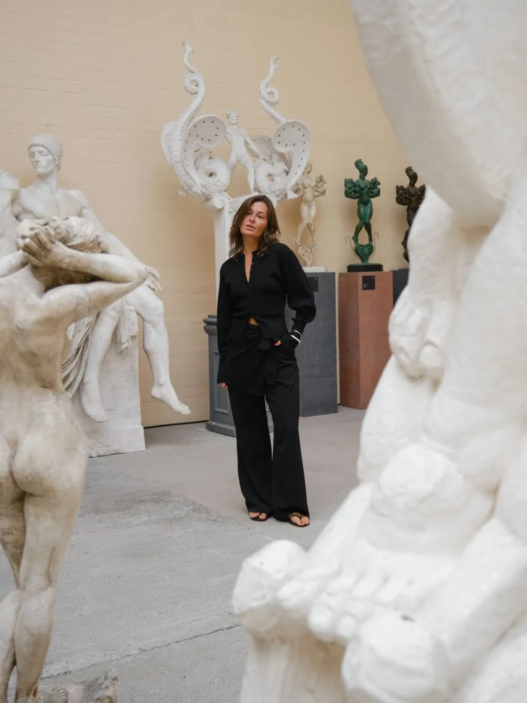 - Modellen er 176 cm høj og bærer størrelse 36